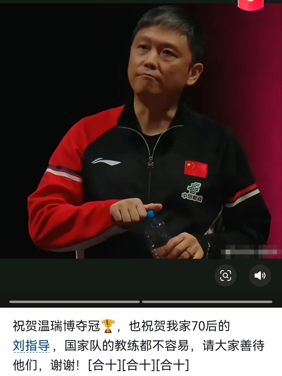 是自豪,也是支持! 有开心,也有心疼! 国乒小将温瑞博马斯喀特常规挑战赛男单夺冠,刘志强教练的太太,温瑞博的师娘牛建锋,发文祝贺温瑞博夺冠! “祝贺温瑞博夺冠🏆,也祝贺我家70后的刘指导,国家队的教练都不容易,请大家善待他们,谢谢🙏🙏🙏” 谢谢师娘!刘指导真的很辛苦了很感谢!