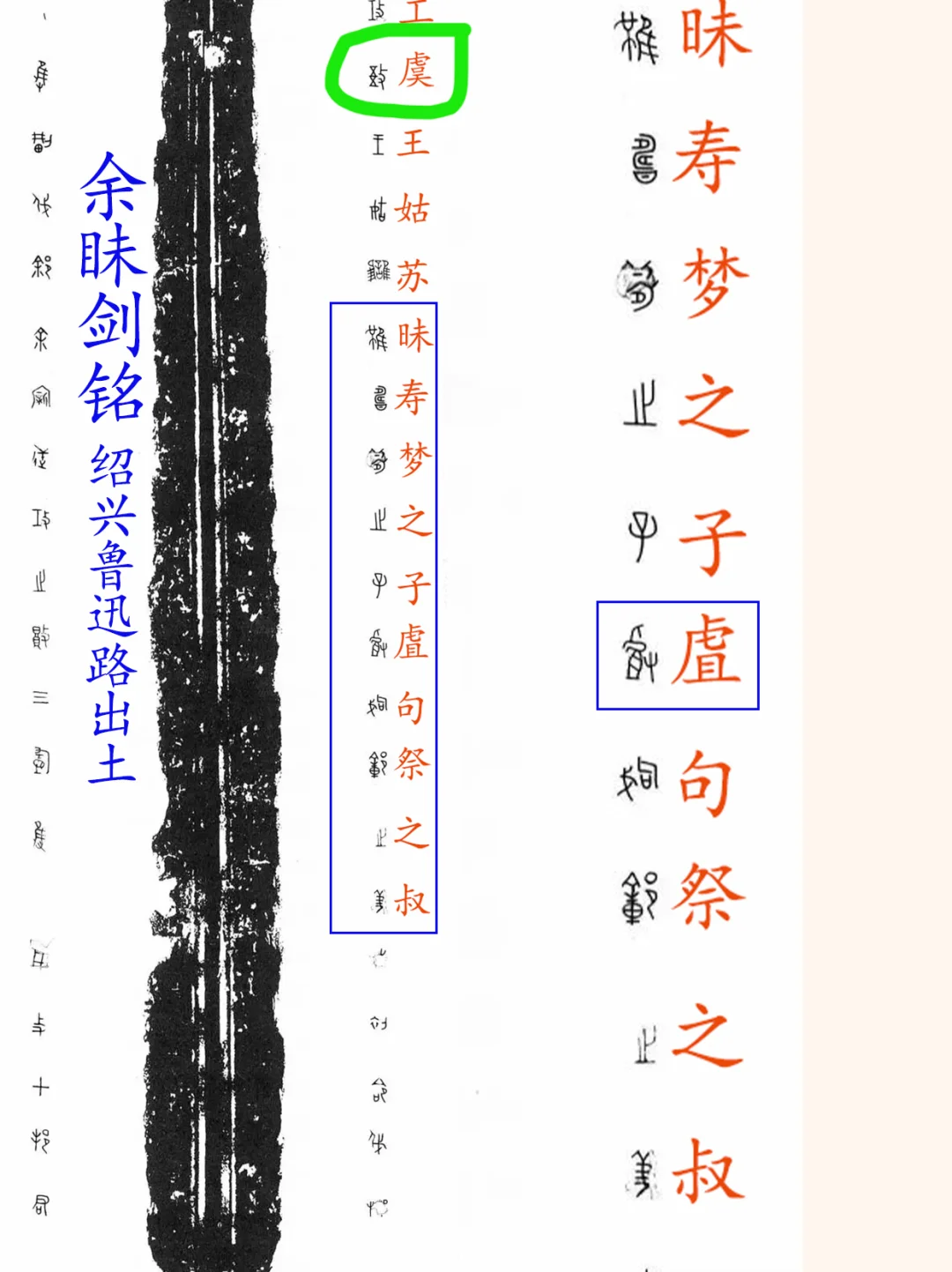 图三、四、五、六,吴国剑铭,王名有:吴王、工䰻王、吾王及虘。