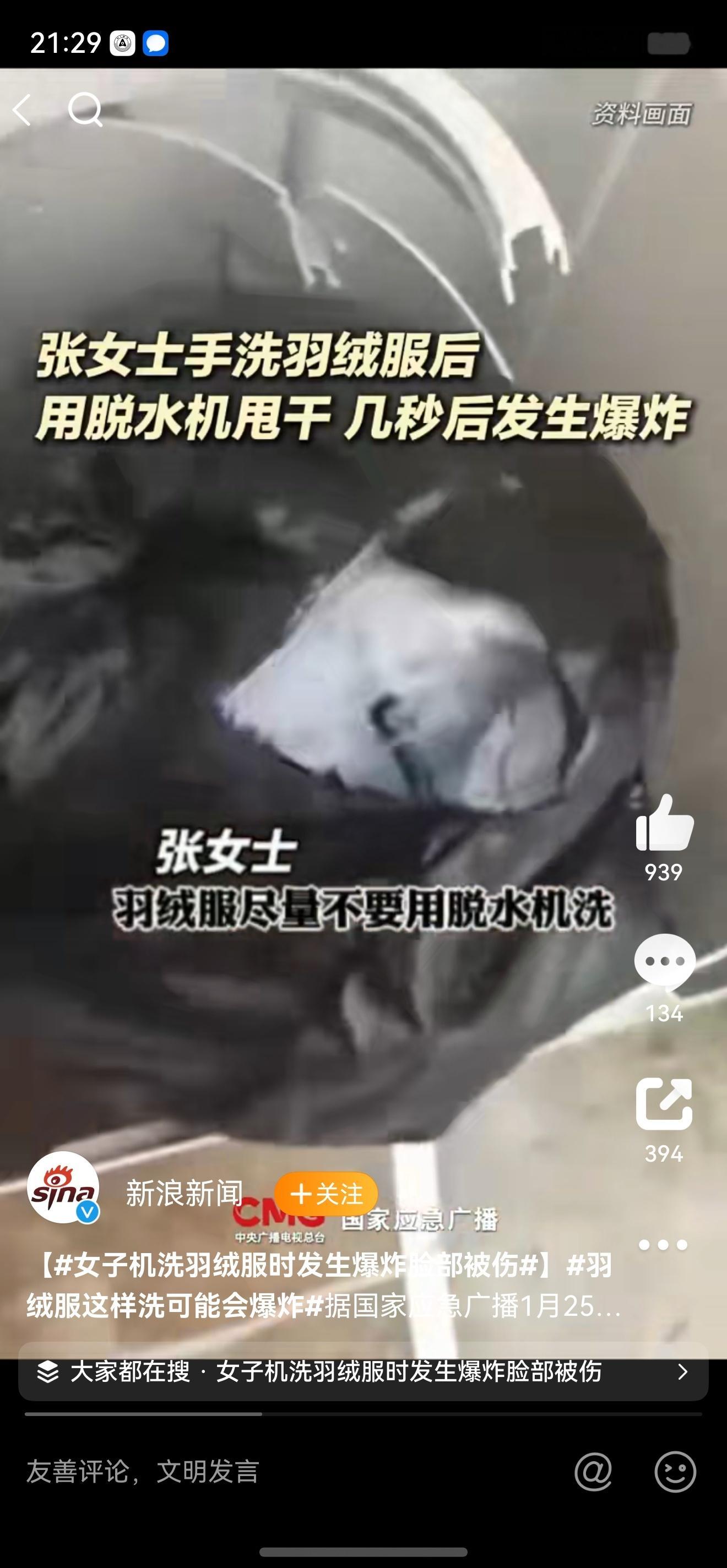 羽绒服这样洗可能会爆炸羽绒服怎么能脱水机洗呢,正解永远是干洗店干洗啊,反正一年也就穿两三个月,直接干洗店完事了,别省那点钱…