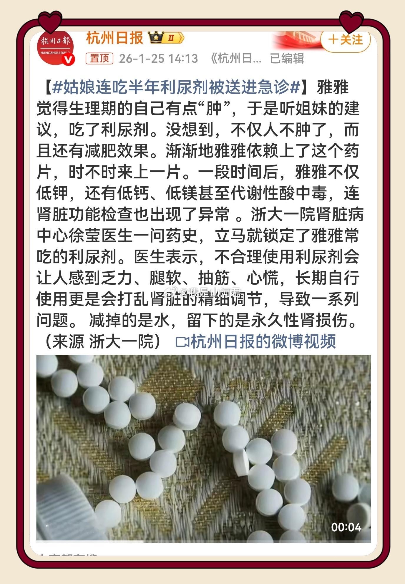 姑娘连吃半年利尿剂被送进急诊 以健康为代价的“瘦”毫无美感。利尿剂减去的只是水分,却可能在肾脏留下永久伤痕。盲目用药不是变美捷径,而是危险赌博。请记住:任何脱离医生指导的服药都是对身体的背叛。科学健康才是真正的美丽底色。洞见计划 锦州·锦州市自媒体协会