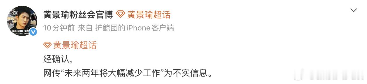 对接否认黄景瑜未来将减少工作 对接否认黄景瑜未来两年将大幅减少工作。