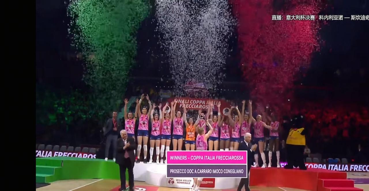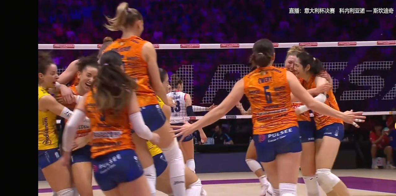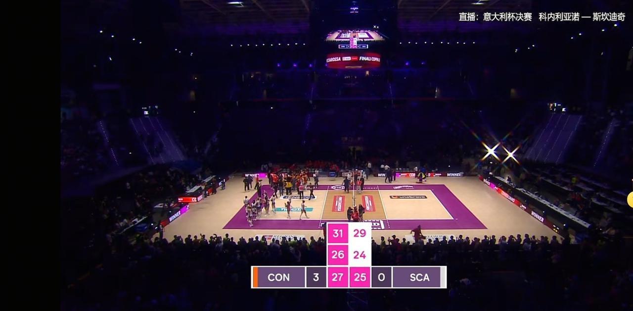在今天凌晨结束的意大利杯女排决赛中,朱婷效力的科内利亚诺直落3局战胜斯坎迪奇获得冠军,这也是科内本赛季第一个冠军,本场比赛,科内派出了朱婷在内的全部主力应战,由于双方实力相当,比赛打得异常紧张激烈,第一局科内以31:29险胜,第二局、第三局也跟第一局一样打得异常胶着激烈,也都是超过了25分后才见胜负,科内又幸运的以26:24、27:25拿下,最终以3:0战胜斯坎迪奇获得冠军,科内的主攻手加比获MVP,朱婷本场比赛一样发挥出色,虽然球权不多,但全场拿下13分,她出色的防守和稳定的一传是科内获胜的关键因素之一,而且在第一局和第三局都是她拿下关键分,还有她的几次发球轮都让科内扭转落后的局面,不得不赞叹朱婷确实太全面了,祝贺科内,祝贺朱婷[玫瑰][玫瑰][玫瑰]