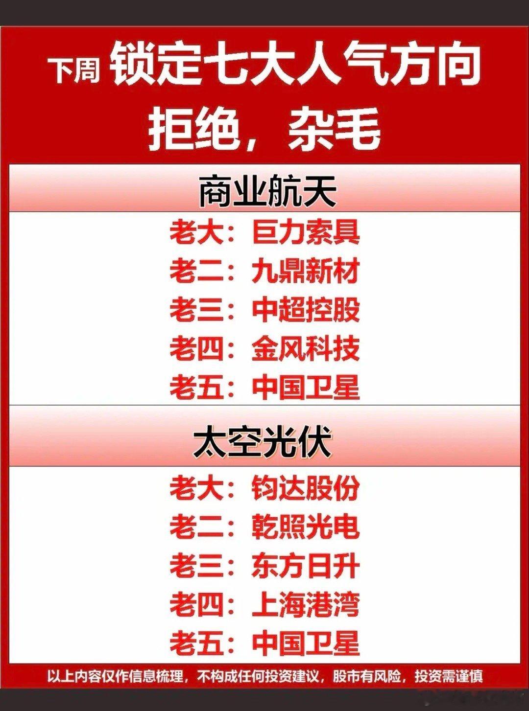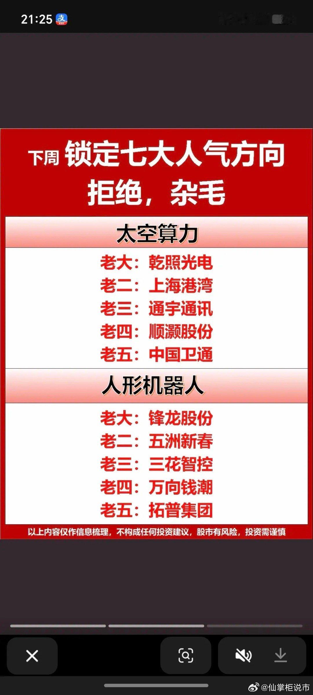 1.26周一 下周市场热点+投资方向1.商业航天2.太空光伏3.太空算力4.人形机器人5.智能电网6.人工智能7.存储芯片