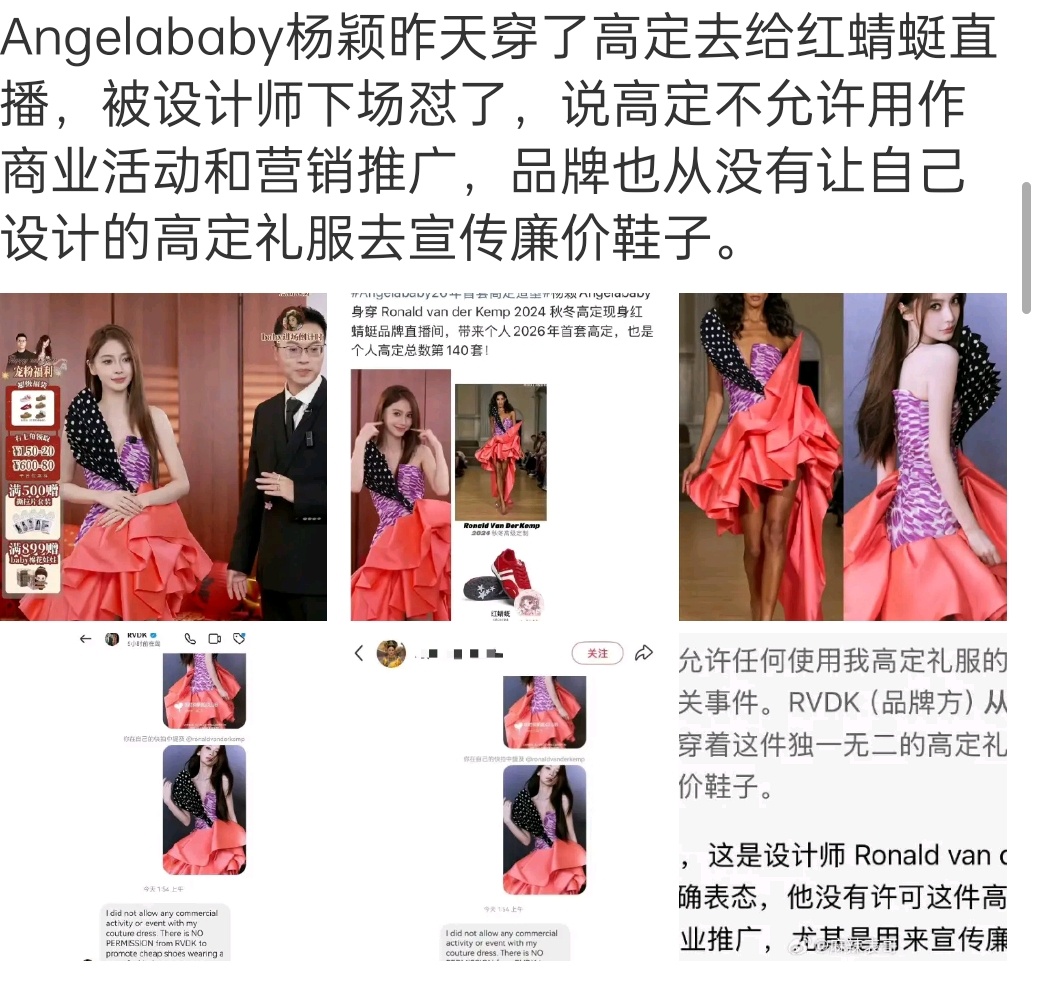 穿高定直播带货,被设计师下场怼:“品牌也从没有让自己设计的高定礼服去宣传廉价鞋子。” 这就有点尴尬了