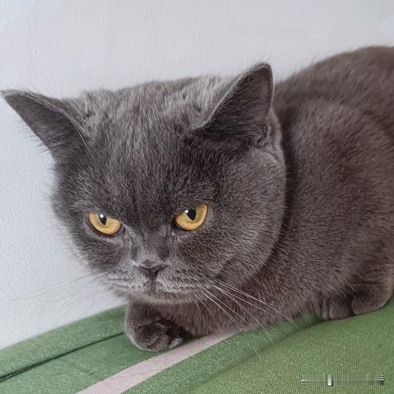 想撸猫了,能分享你家猫咪的照片吗我家这只蓝猫是个自带“严肃滤镜”的小家伙,圆滚滚的身子总爱趴在垫子上,金黄的眼睛瞪得溜圆,像在思考猫生大事,看起来凶巴巴,其实一摸就软成一团啦~ 猫咪萌照 宠物小蓝猫