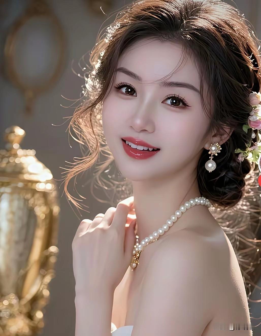 杏眼圆圆赛玉珰, 瞥来一笑压年妆。 丹青纵有生花笔, 闭月羞花盈暗香。