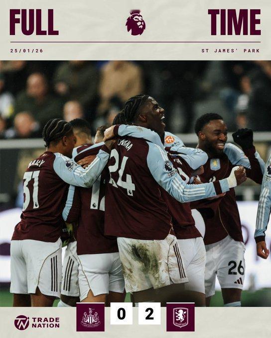 纽卡斯尔联0比2阿斯顿维拉维拉客场2-0纽卡,终结21年圣詹姆斯公园不胜、结束两轮不胜,积46分追平曼城暂列第三;纽卡伤病缠身主场失利,33分第九,争四节奏放缓。赛况速览• 比分:纽卡0-2维拉(布恩迪亚19’世界波;沃特金斯88’头球)• 关键节点:布恩迪亚接罗杰斯助攻,25码弧线球轰死角;大马丁开场扑托纳利单刀、42分钟挡麦利头球;乔林顿48’伤退;迪涅助攻沃特金斯头球锁定胜局• 核心数据:纽卡控球60%、11射4正、xG1.4;维拉40%控球、12射8正、xG2.1;大马丁7次扑救+零封,全场最佳积分榜影响(23轮后)• 阿森纳50分(15胜5平3负),榜首• 曼城46分(14胜4平5负),第二(净胜球占优)• 阿斯顿维拉46分(14胜4平5负),第三,追平曼城,距榜首4分• 切尔西37分(11胜4平8负),第四(先赛一场)• 纽卡33分(9胜6平8负),第九,距前四4分,伤病拖累争四节奏关键观察• 维拉:防守反击教科书,大马丁零封定军心,布恩迪亚世界波+沃特金斯高效终结;客场能力英超顶级,争冠梯队席位稳固• 纽卡:伤病(7人缺阵)+ 终结乏力,乔林顿伤退雪上加霜;控球占优却难破密集,主场拿分效率下滑,欧战资格争夺更被动