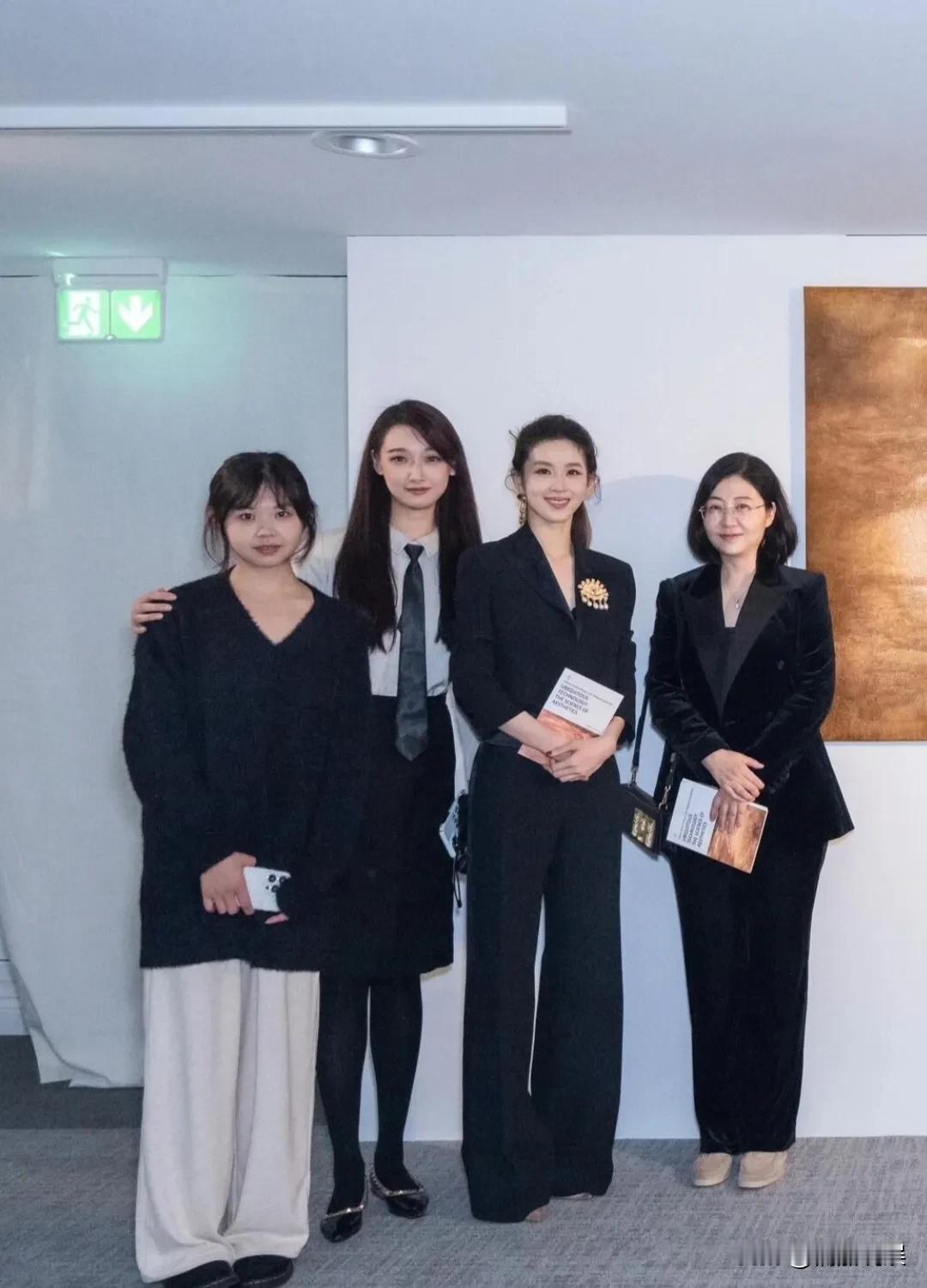 章泽天在自己的社交平台宣布:京东美术馆正式成立。 她和团队在美术馆现身,穿着一身黑色的西装,上面别了一颗昂贵的胸针,扎着高马尾,化着精致的妆容,脸巨小,五官标致,身材纤瘦窈窕,气质出众! 她真的是越来越有事业女性那味了,干练精明! 只是为啥她的耳朵上只戴着一只耳环,难道这耳环不是一对而是一只吗?