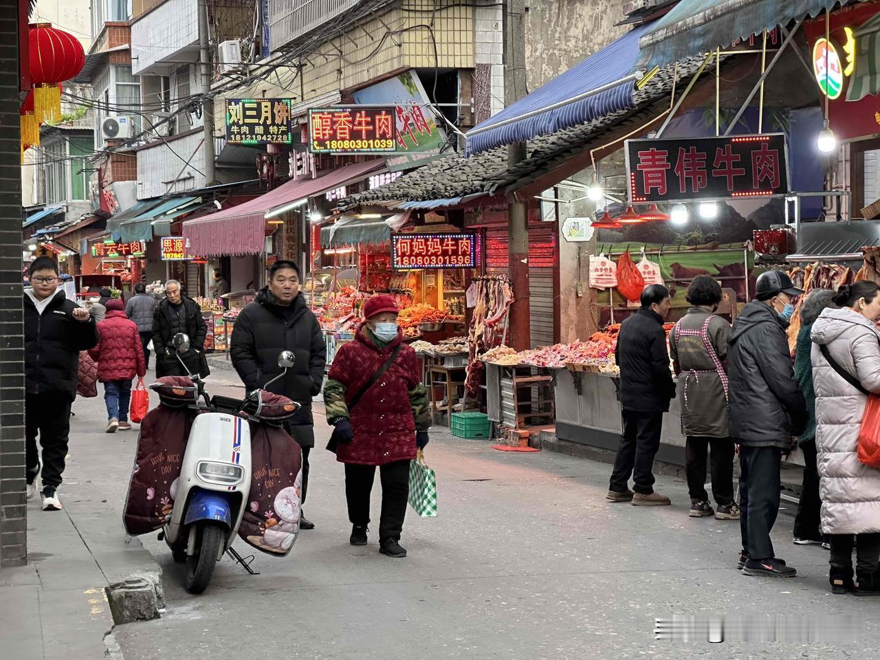 虽然今天是星期一,但是,因为小学生们已经开始放寒假啦!所以,1月26日上午8点半,本应拥挤不堪的阆中古城第一农贸市场的这条街,冷冷清清……因为这条街上的回民小学真的不用上课啦! 所以,一大早是拍不到热闹喧嚣的街头烟火气息啦!嗯,估计9点半左右,这里瞬间就会嘈杂混乱起来吧? 我就是特别爱这混乱不堪的菜市场生活啊! 阆中古城,吃特色牛肉面和牛肉包子,采购张飞牛肉、华珍牛肉或者白馍,就是在这个农贸市场及周边啦! 春节假期,阆中古城及县城及过江大桥,可能从早堵到晚,到时候,这个地方,礼拜寺街(回民学校、第一农贸市场、华珍牛肉)一定会非常火爆,大家千万不要来哟! 2026年春节,我也只敢在春节开头的腊八节来阆中古城!