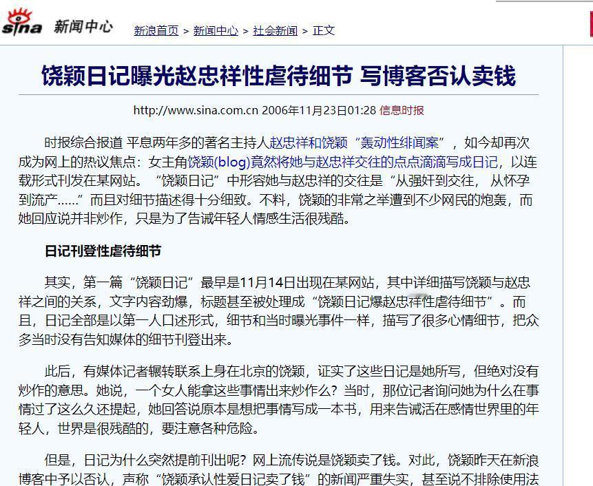 2004年,“赵忠祥数几年时间里一直和我保持着不正当关系,并且把我折磨的满身疾病