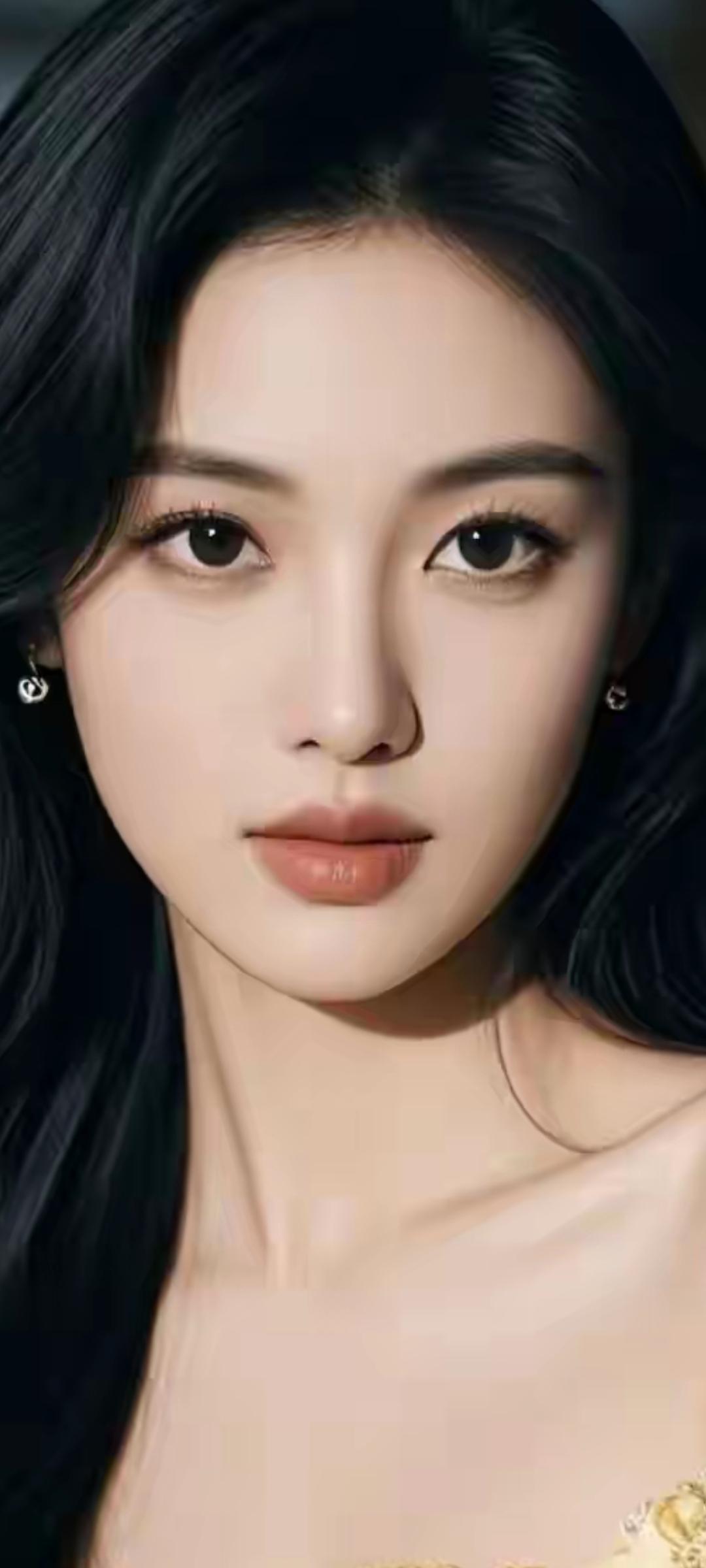 惊艳的东方美人,黑发红唇,古典优雅。