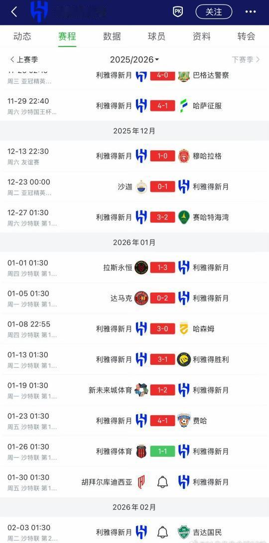 依靠裁判的帮忙,利雅得新月联赛依然不败。积分优势缩小仅领先第二名5分。 利雅得胜利少赛一场排名第四,再输的话,C罗不但一冠难求,而且亚冠都没资格参加。