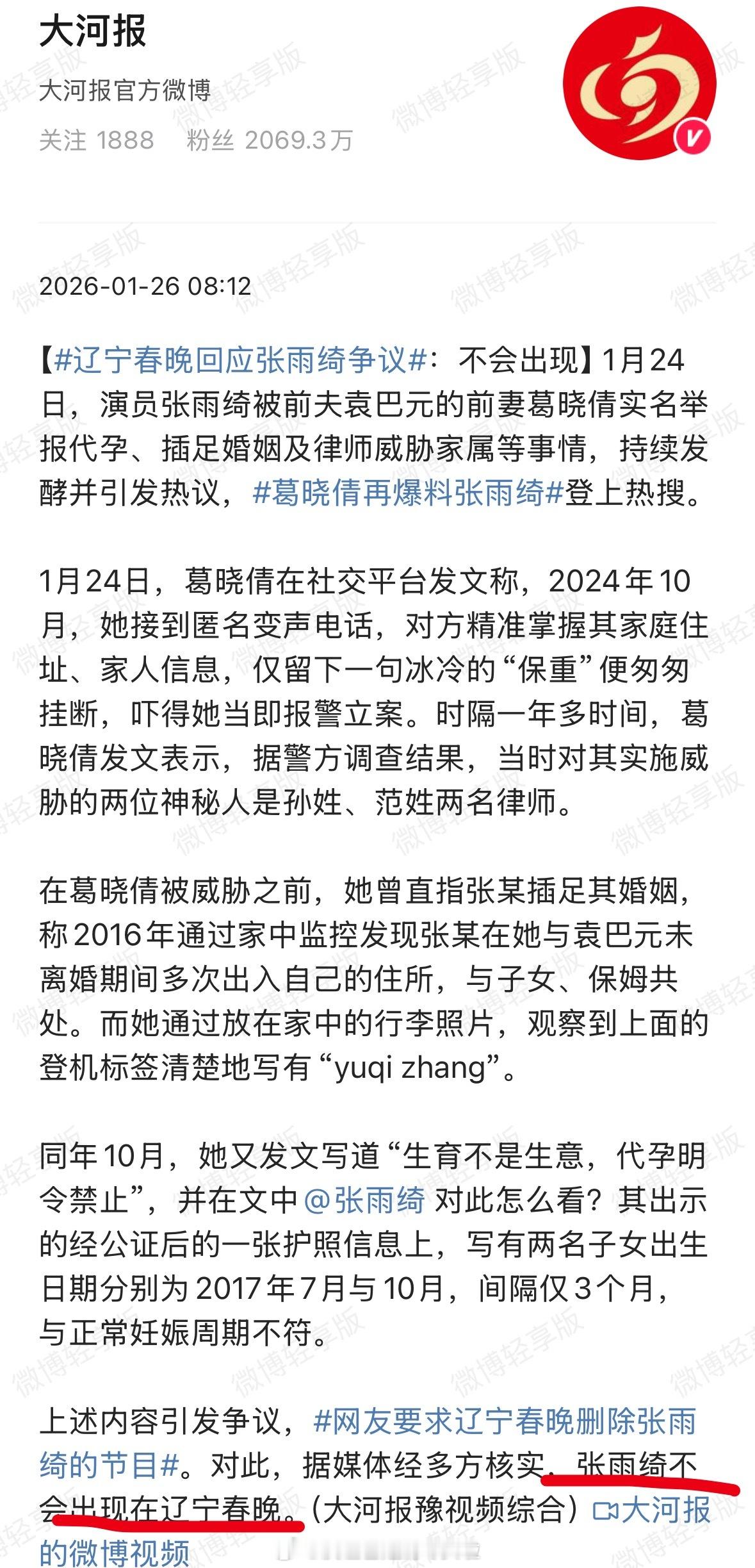 有媒体报道张雨绮不会出现在辽宁春晚了目前张雨绮方没有对葛晓倩的微博进行回应葛晓倩再爆料张雨绮 网友要求辽宁春晚删除张雨绮的节目 曝张雨绮拉黑网友