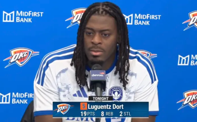 NBA常规赛,雷霆101-103不敌猛龙。 赛后雷霆球员吕冈茨-多尔特接受了记者采访,谈到了本场失利,多尔特表示:“我觉得每场比赛都是一次学习的经历。我们打了很多高强度的比赛,绝不能把这些比赛当成理所当然,今晚又是一堂课。” 多尔特本场比赛出战35分钟,得到19分8篮板2助攻2抢断。