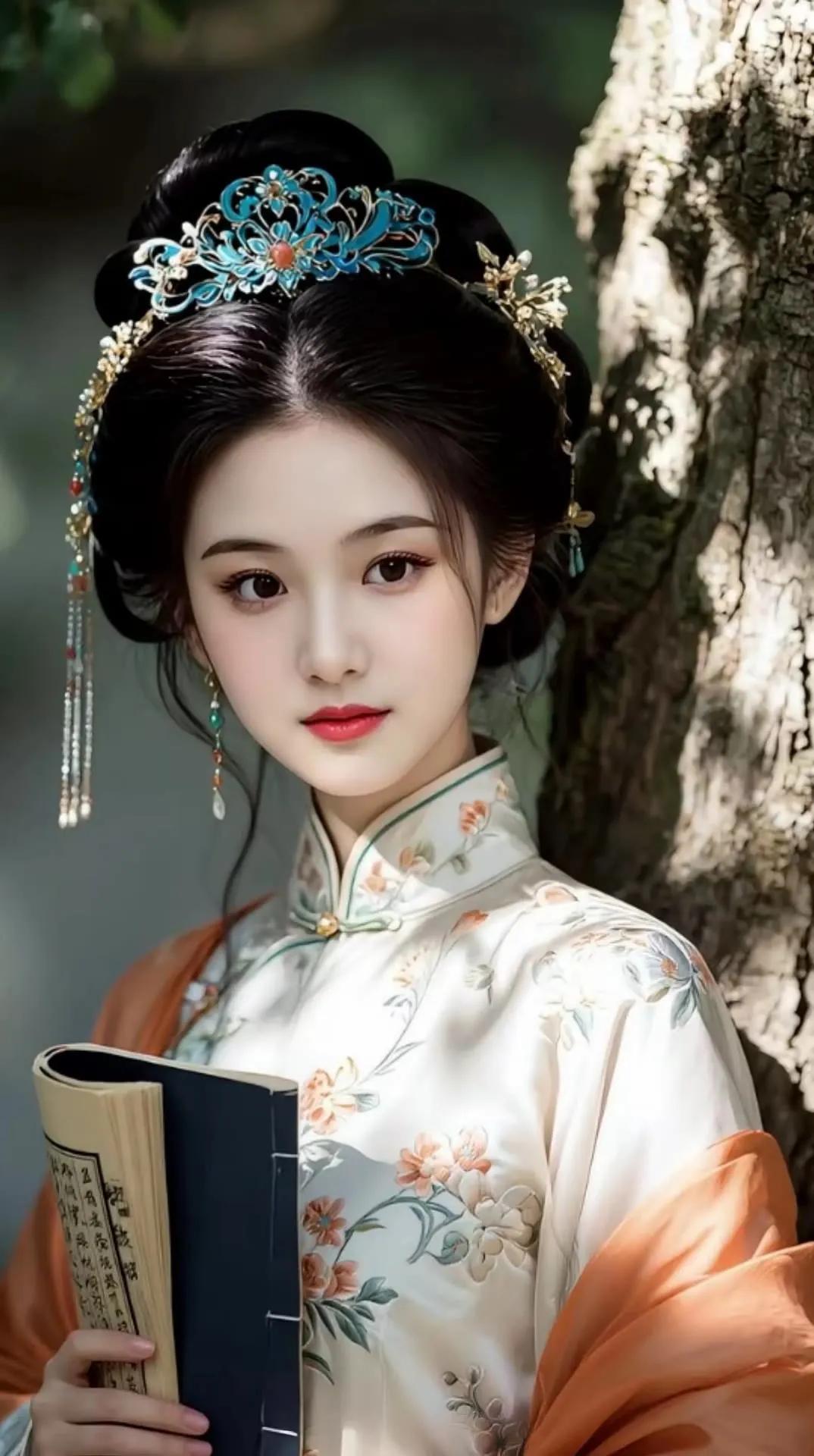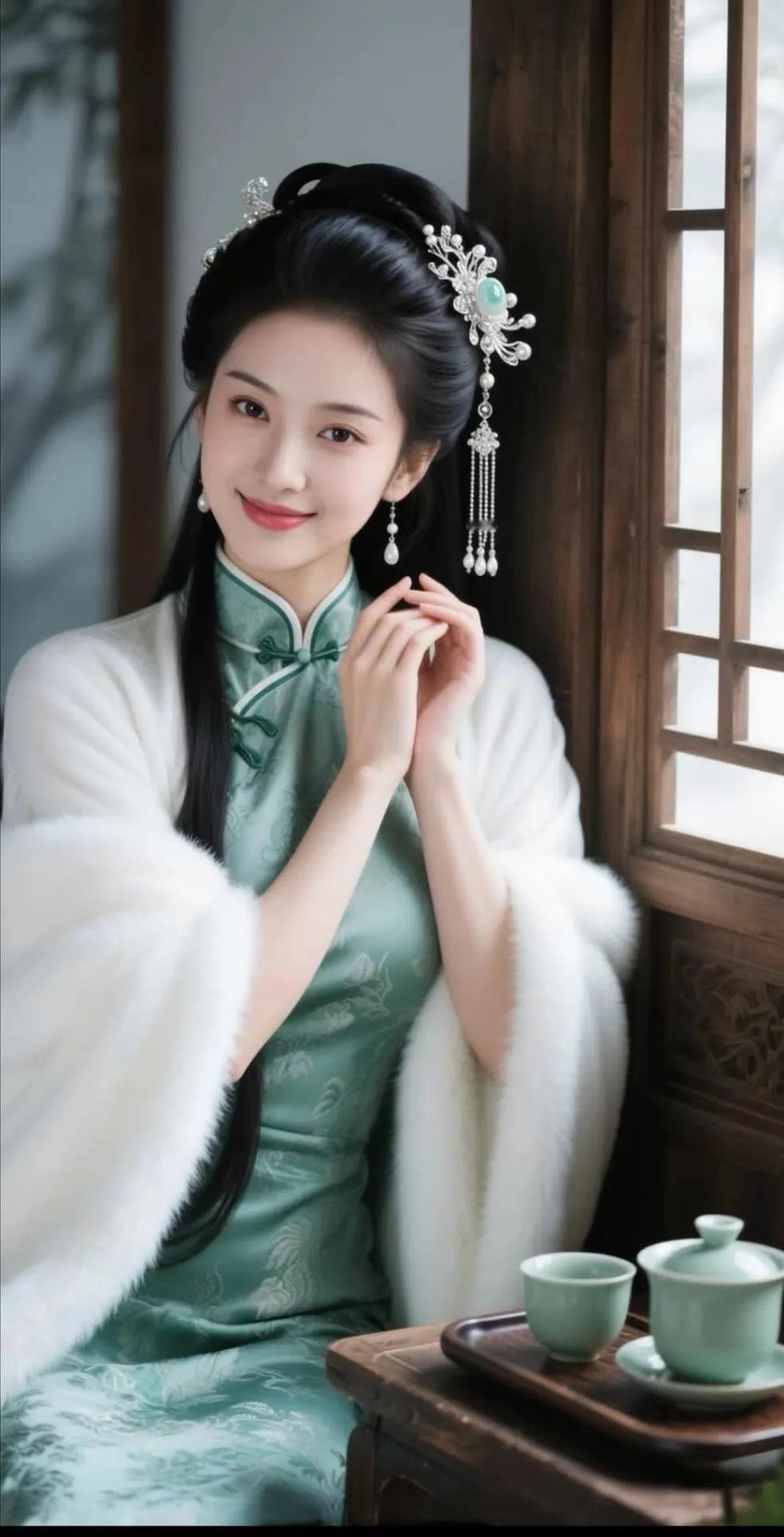 温柔甜美的少女,白色蕾丝连衣裙,散发着优雅的气息。