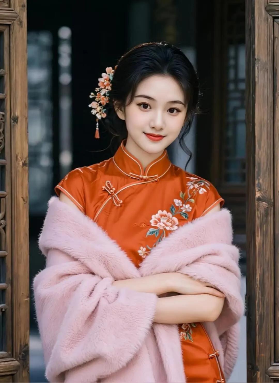 阳光下的少女,粉花耳环,紫色毛衣,微笑如花。
