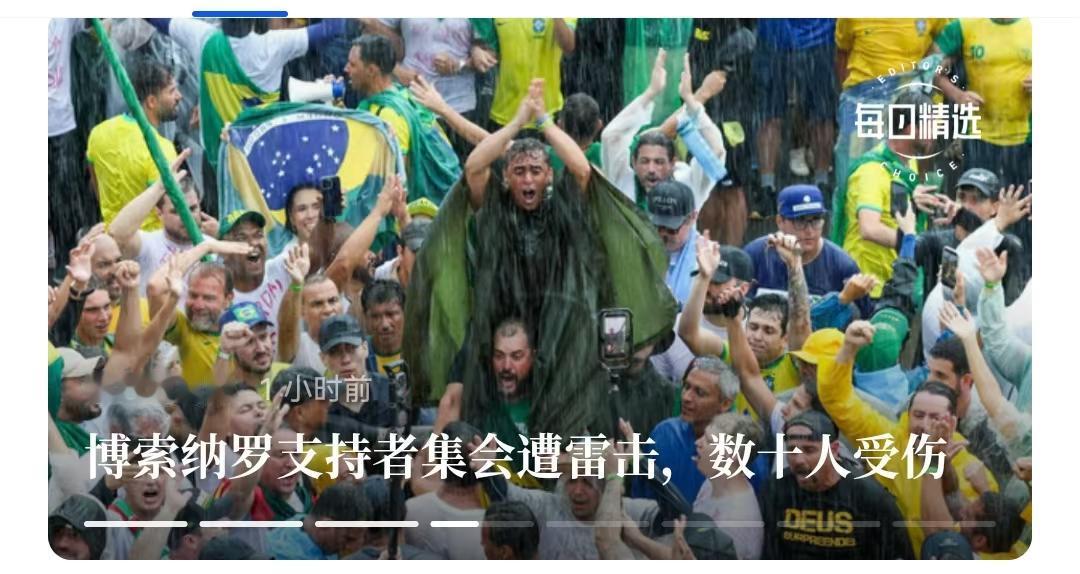 果然恶人遭雷劈。巴西前总统博索纳罗的支持者聚集于巴西利亚克鲁塞罗广场支持突索纳罗,结果遭雷劈,看来索纳罗不是好人。 这起“突发”雷击事件,数十人受伤。据现场人形容,咔嚓一下,全劈了。 所以说,现在成为美国的用蹩是很危险的,特此善意提醒中国公知系列,小心被雷劈啊,雷不管你爱美国还是日本,不爱中国就挨劈。