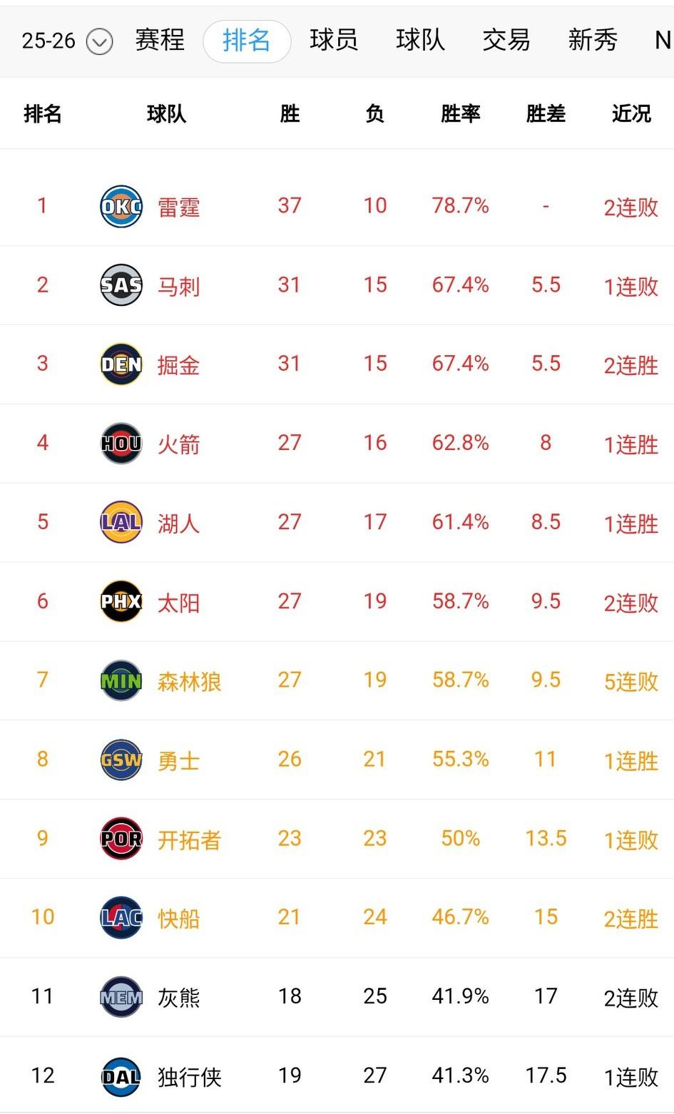 西部大乱斗又开始了!勇士、快船成为搅局者。 谁能想到森林狼会五连败,排名冲入附加赛区,与火箭湖人的差距又拉大了。 太阳两连败排名第六,胜场差与森林狼持平。 快船又胜了,追上开拓者只是时间问题。 勇士今天客场居然大胜森林狼,算是意外惊喜,跟第六名只有1.5个胜场差了,进入季后赛区指日可待。