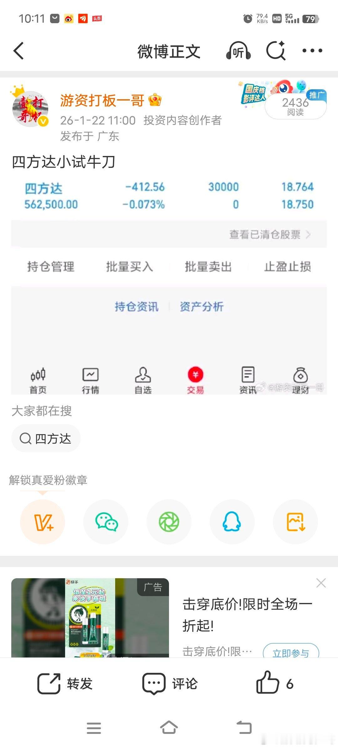 我爸去年不知听了谁的忽悠,稀里糊涂买了五万块的农业银行股票。今天突然把手机怼到我
