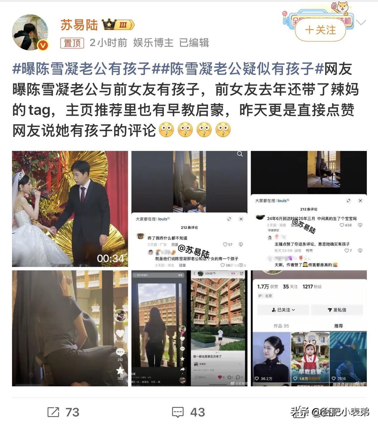 曝陈雪凝老公有孩子陈雪凝这婚结的,简直是热搜常驻户![允悲] 刚结婚没几天,先