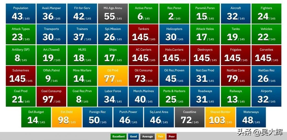 【乌克兰在全球军力排行榜中位列第20名】 此次评估参考了超过60项指标,不仅包