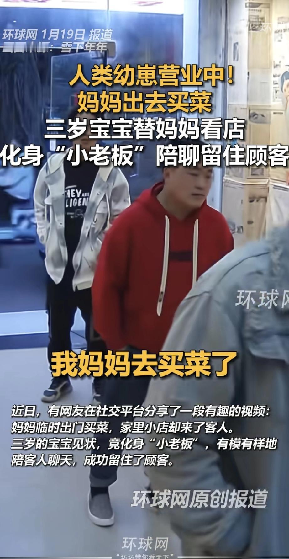 开餐馆的妈妈临时出门买菜,三岁的小宝贝竟然独自当起了“小老板”! 看见有顾客进店,小家伙一点儿不怯场,奶声奶气地说:“我妈妈去买菜了。”然后,他就像个小大人似的,陪着顾客聊天,介绍东西,硬是靠着一股可爱劲儿,把客人给留住了。 顾客被逗得直乐,也没着急走,边等边和“小老板”聊天。网友们都笑翻了:“这是人类幼崽‘营业中’啊!”“三岁就开始帮妈妈分担了,太能干了!” 真是又暖心又可爱,小家伙未来可期呀!