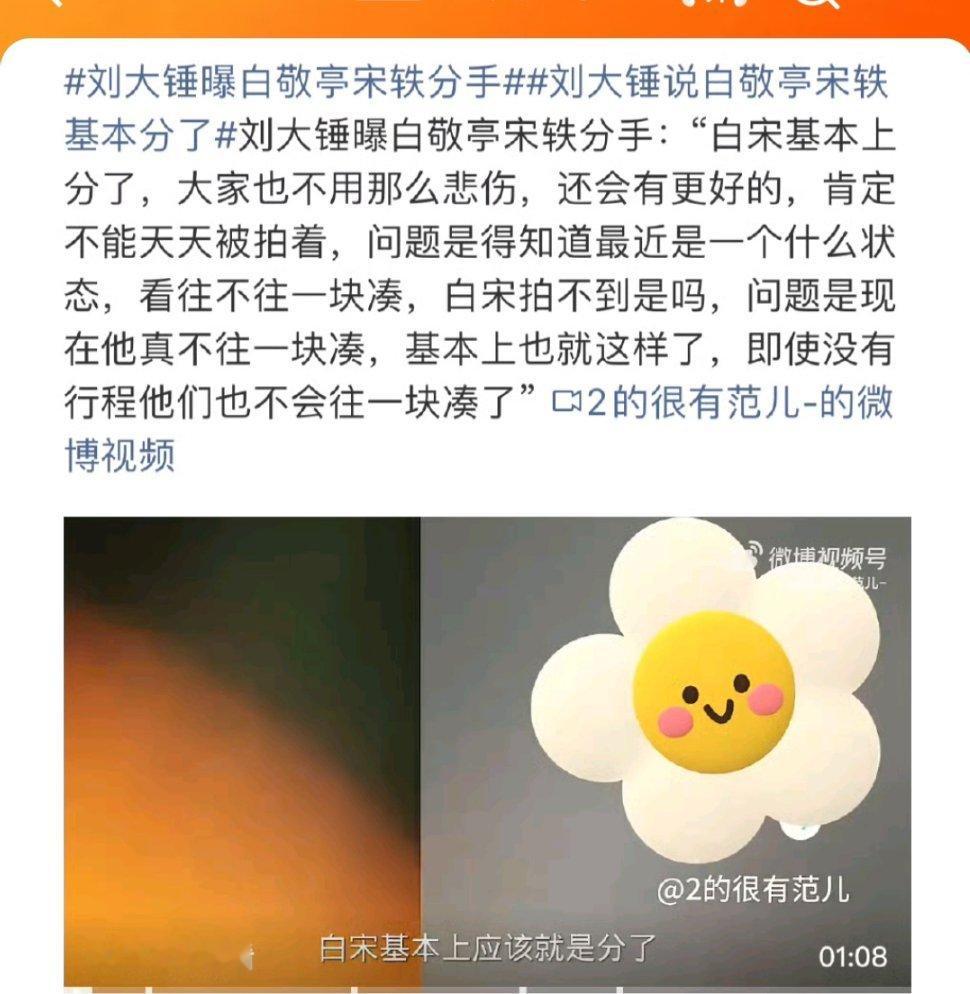 刘大锤曝白敬亭宋轶分手 不可惜 没官宣过 可惜啥其次,即便真在一起了,明星们这么忙,天天聚少离多的,都不在一个城市,日子久了肯定会感情生变。