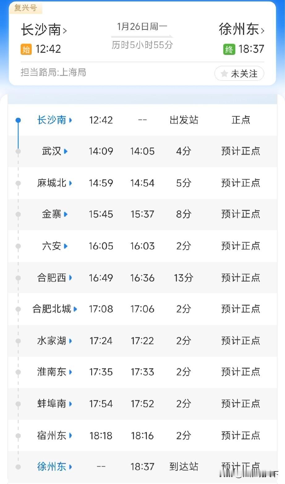 湖南湖北安徽江苏4省高铁大通道,G1742次站点大部分都在安徽境内 中国铁路上海局集团开行的G1742次,总运行时间5小时55分钟,串联起湖南,湖北,安徽,江苏4个省,总计12个车站,其中安徽省内就有8个车站,大部分时间都是在安徽省内运行。 G1742次,由长沙南发车,湖南省内其余车站都不停,一站直达武汉站,在湖北省内,再停麻城一站,进入安徽后,先后停金寨,六安,合肥西,合肥北城,水家湖,淮南东,蚌埠南,宿州东,进入江苏省后,就是终点站徐州东站。 G1742次,线路途经湖南,湖北,安徽,江苏4个省,是串联4省的高铁大通道,但是大部分运营区间都是在安徽省内,可以看作是安徽省内的城际列车。湖南高铁路线图 湖北动车 武汉到合肥高铁 湖南湖北分界线 湘鄂交通