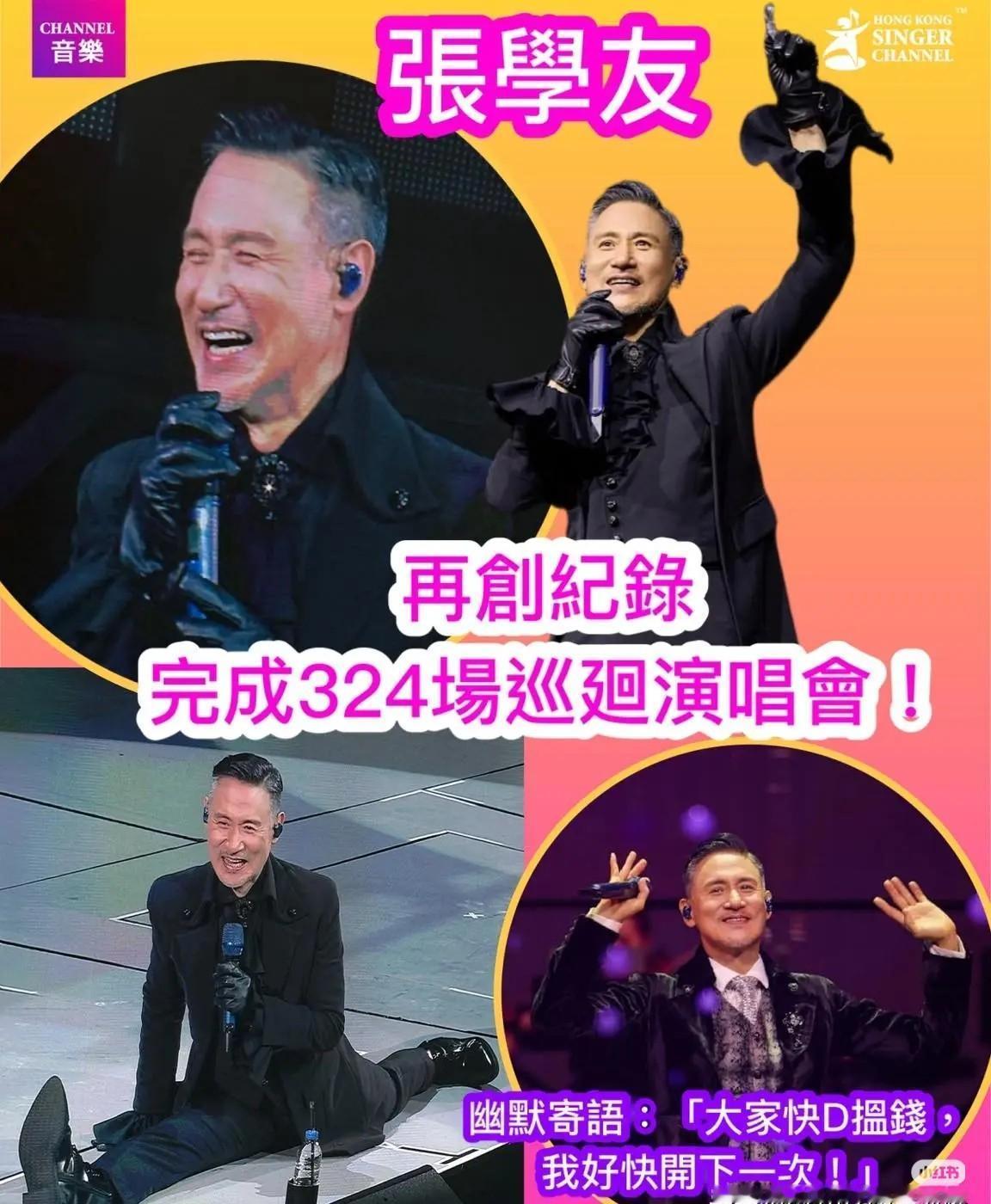 刚劈完一字马的张学友,扭头宣布自己“暂时失业”了。 你没看错。64岁,2年7个月,324场巡演。 他刚把整个华语乐坛的纪录踩在脚下。 舞台上甚至还试了试“大字马”。 他用行动告诉你:神,不会老。 台下传他欠债? 他转身就把朋友送的花篮全折现了。 自己再掏腰包,凑够130万,捐了。 他说自己生活节俭,有储蓄,压根没借过钱。 网络上的风言风语,他懒得追,也懒得解释。 324场汗水,只说明一件事。 所谓的终点,不是用来停下的,而是用来超越的。