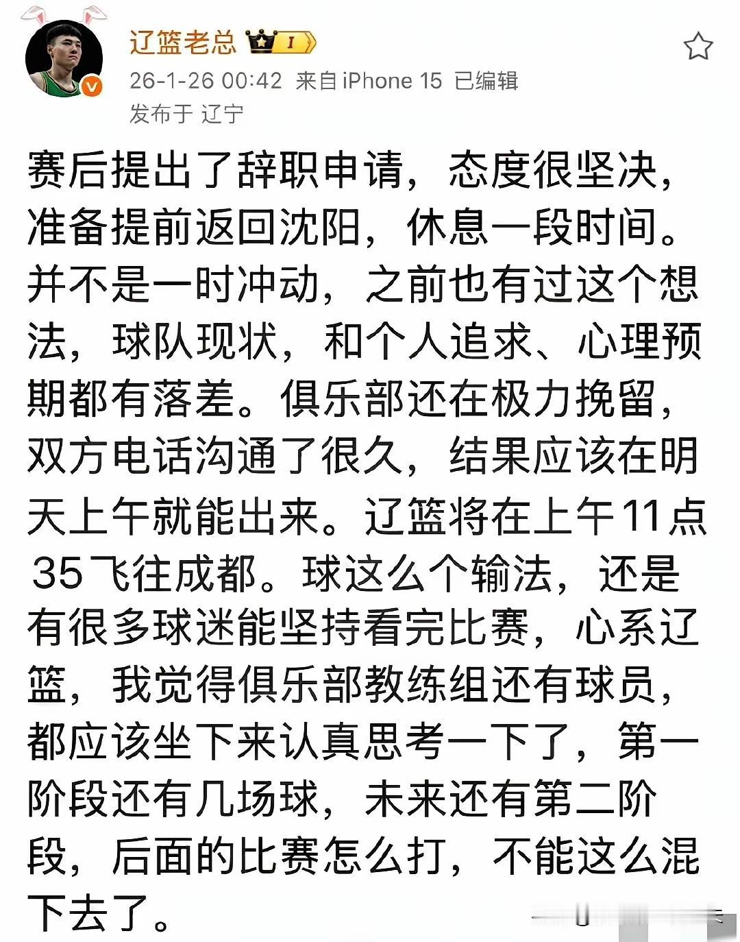 支持杨指导辞职,辽篮早已时过境迁物是人非了,有情怀有担当的球员都走了退了,球队成
