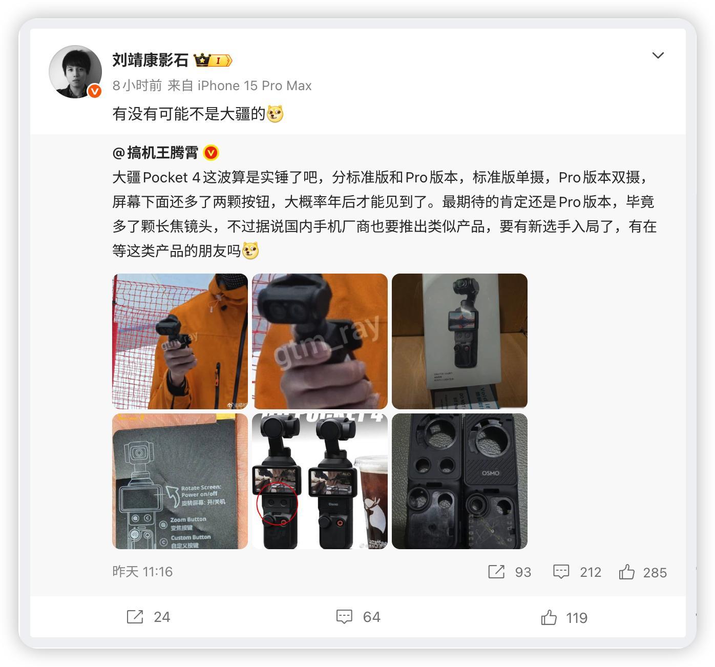 6啊,网上流传的双摄像头版大疆 OSMO Pocket 4,实际是影石 Insta360 的产品 …… 这营销方式,真是有点秀。我感觉大疆 DJI OSMO Pocket 4 还是存在双摄像头版本的,只是不是这几张图里的样子。