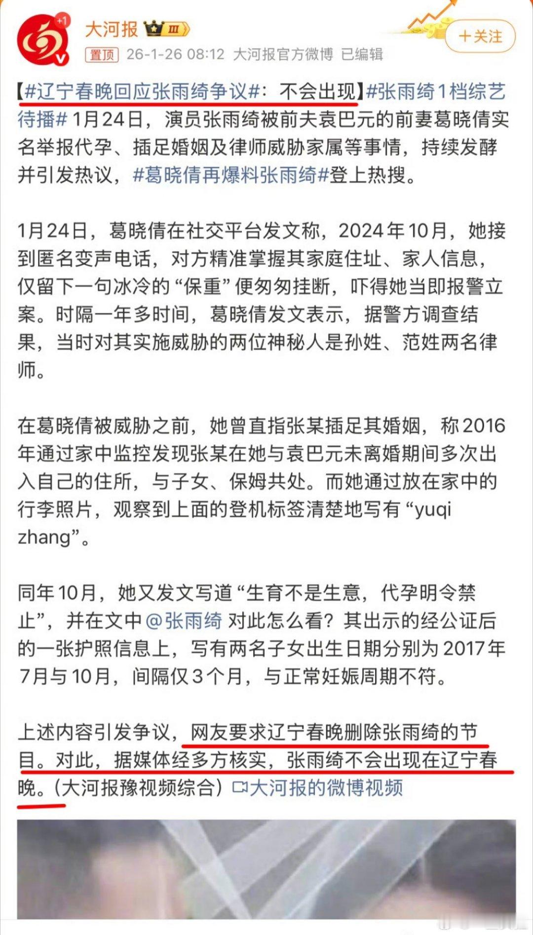 张雨绮真去不了辽宁春晚了?这不相当于默认了吗。。