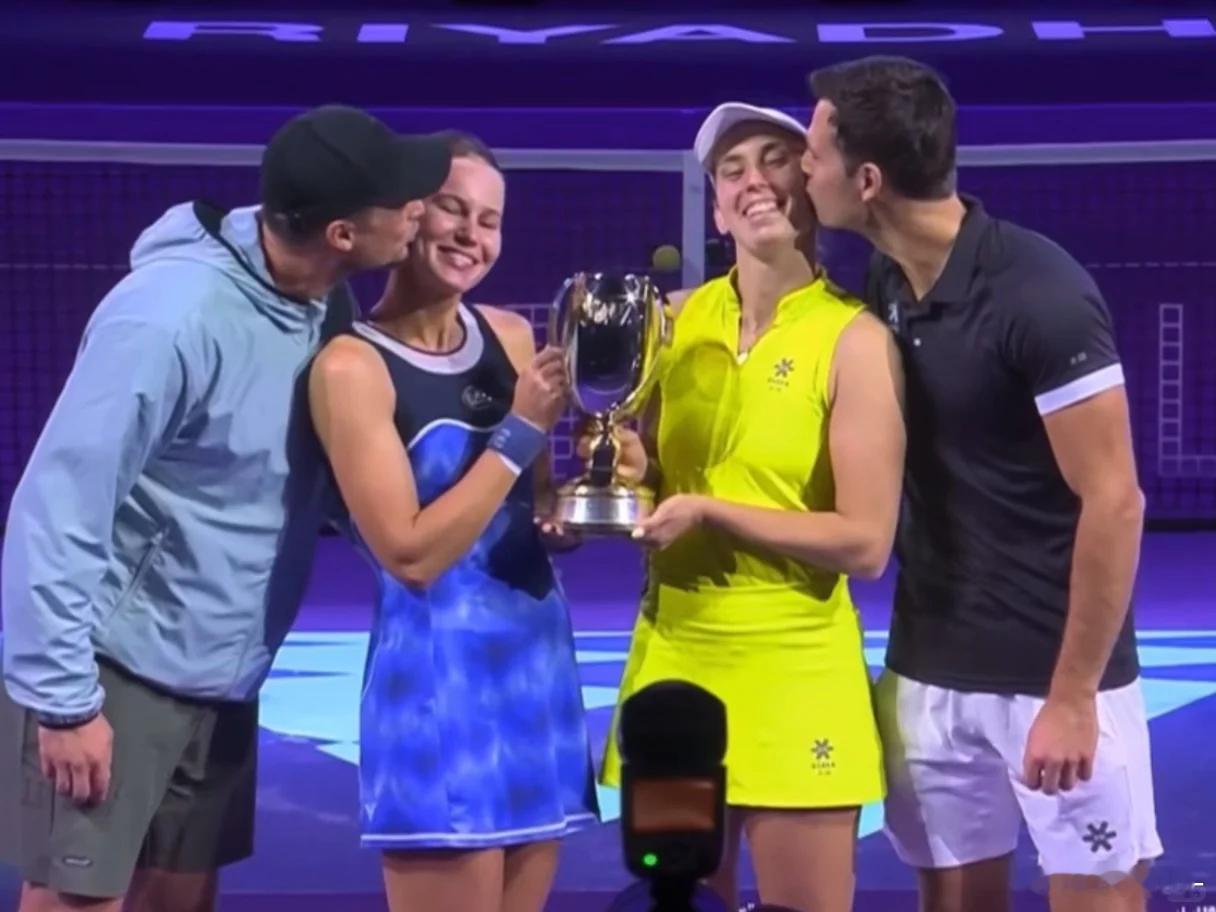 好消息:梅尔滕斯和张帅可以专注女双了!!!今天好多都在说梅尔滕斯的教练兼老公帅,去搜了一下,嗯,的确可以。还记得去年WTA年终总决赛名场面吗,库德梅托娃和梅尔滕斯双打夺冠后,两位的教练兼老公都亲上去咯~莱巴金娜2比0梅尔滕斯这很澳网澳网2026