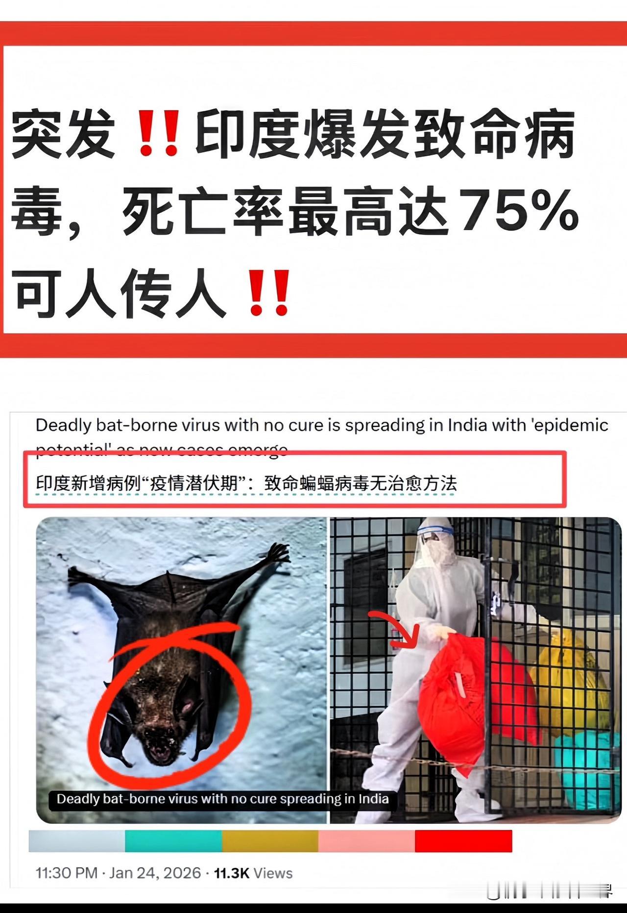 致死率最高飙到75%,这数字看得人心惊肉跳。 印度那边尼帕病毒又起势了,这可不是普通的头疼脑热。 泰国普吉岛反应最快,立马死盯来自印度的游客,尼泊尔也是严阵以待,生怕这煞星过境。 这病毒也是邪门,宿主竟然是果蝠。 如果不小心吃了被蝙蝠“尝”过的水果,或者接触了被污染的食物,这染病几率直线飙升。 关键它还能人传人。 加尔各答那边气氛已经紧张起来了,近百人被按在家里隔离。 最让人绝望的是什么? 没疫苗,没特效药,纯靠命硬。 当年马新两国那一波带走了上百条人命,血淋淋的教训还在昨天。 在大自然的生化武器面前,人类现有的这点医疗手段,有时候真显得苍白无力。