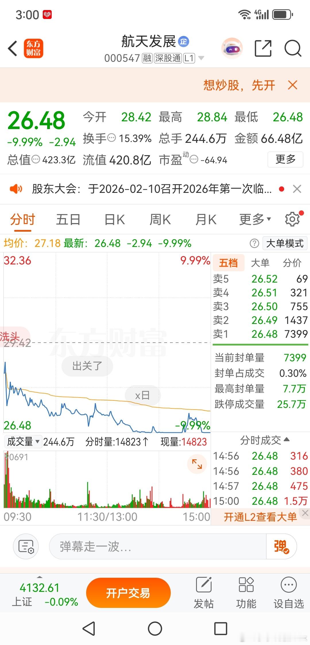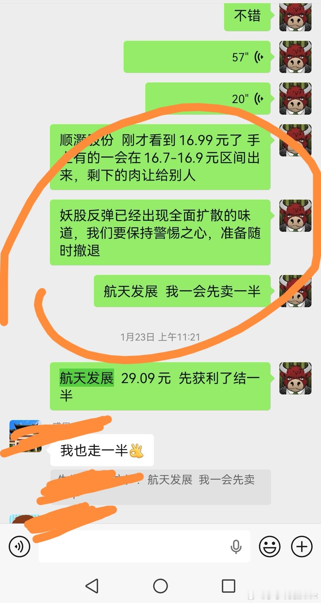 航天发展,还有一半没有走航天发展,还指望今天发给红包,结果直接给了一张罚款单,不过好在我周五29.09元就跑了一半。其实,今天早盘妖股阵营就出现不正常的现象,开盘后就是一轮集体杀跌,我的第一反应就是跑,不过可惜的是没跑掉,下午准备继续跑,结果直接按到了跌停。既然还剩一半没跑掉,那就既来之、则安之吧!有的朋友看到一涨就要去追,有的朋友看到一跌就要去低吸,这都是极端错误的。这段时间做了几个高位崩塌妖股的超跌行情,上周五已经顺利的卖出了2个半,还剩下5%的航天发展。做超跌反弹就是超跌反弹,要有明确的计划。航天发展我目前还有十来个的利润(已经卖一半导致的),两周之内我不会有任何加仓动作,有反弹我就减仓。妖股阵营在持续两天反弹后今天的继续杀跌,告诉我们上周五一定有大量的散户在加这个方向,那么这个方向我们将淡出一段时间。欢迎加入我们的免费交流群财经股票