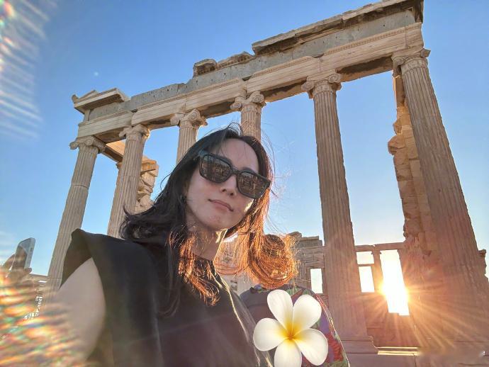 张天爱跟素人合影,胯真的好宽,大宅院似的