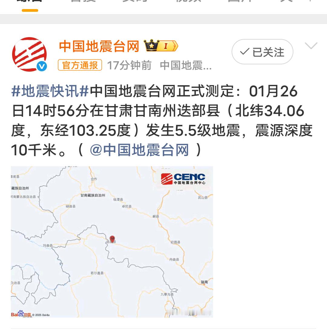 甘肃迭部5.5级地震希望平安无事!