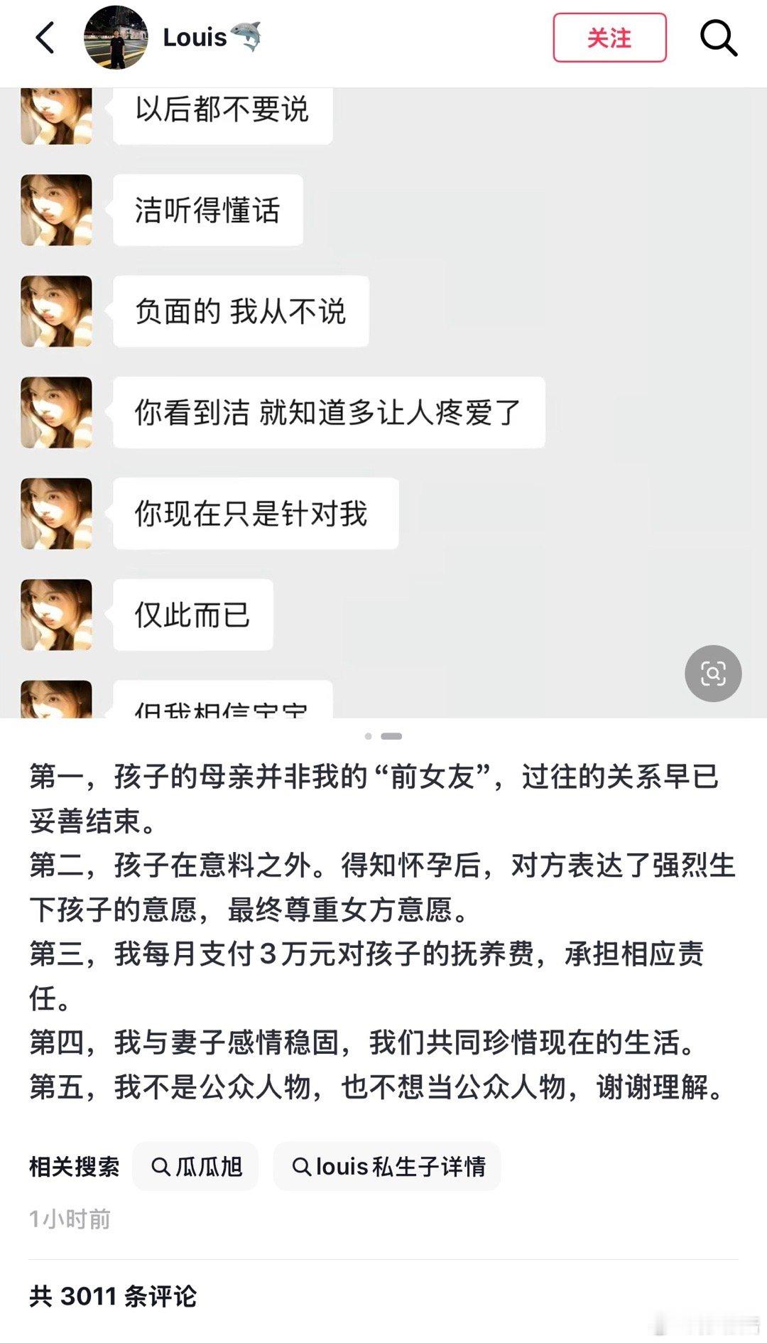陈雪凝老公承认有个孩子陈雪凝老公发文,承认有一个孩子,但与孩子母亲不是恋人关系怀