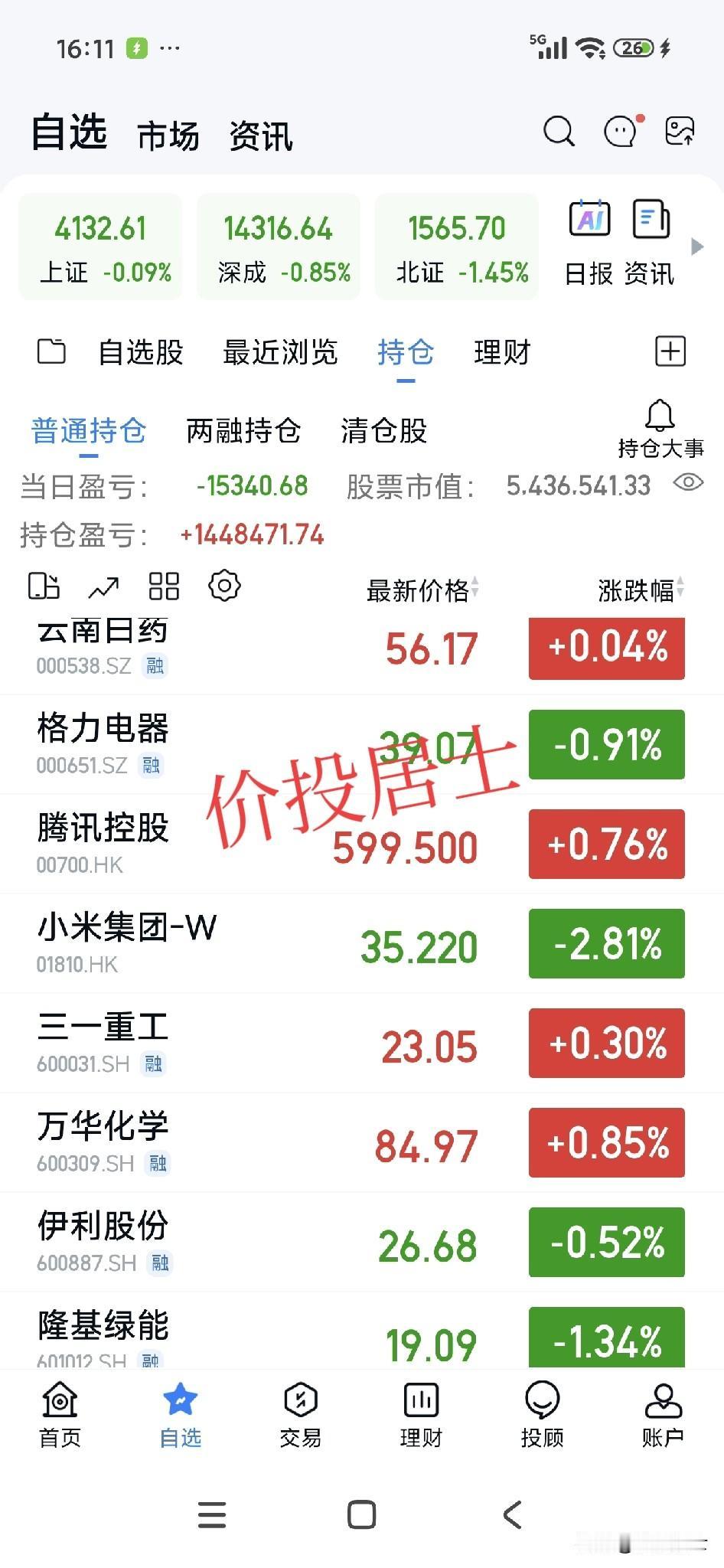 这会港股收盘了!今天大盘算是冲高回落吧,大盘今天的波动性非常大。这说明大家在买卖上存在短期严重分歧! 然而大家不要担心,短期的分歧改变不了长期牛市的趋势!其实不知不觉很多核心资产的股票,自底部也上涨不少了。只不过涨幅远远比不上那些科技,热点,题材与概念股罢了! 个人还是坚信拉长周期,时间是对公司好坏最好的称重机。也有朋友即使我做高抛低吸或者做T,只是个人真的不擅长那些东西,甚至我都没做过那些,也不准备在那些东西上面下功夫。 无论如何,我依然选择坚信价值投资,我既然是个傻子,那么我就选择一傻到底吧,没有做兔子的天赋,我就老老实实做只乌龟吧[祈祷]