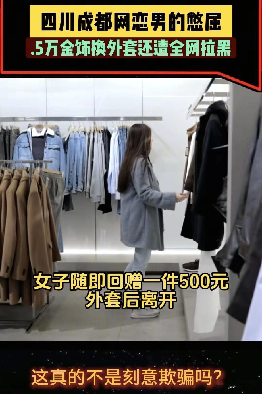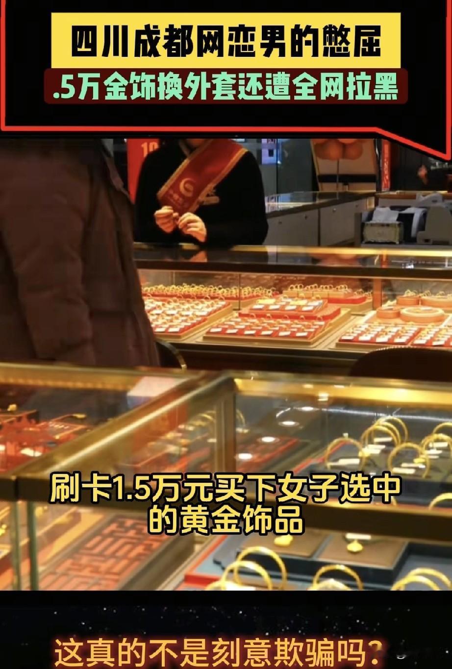 成都一位小伙在网上谈了个对象,两人第一次见面,他就带着姑娘去商场金店,爽快地刷了一万五买了件黄金首饰,姑娘当场给他买了件五百块的外套,就在小伙窃喜之际就联系不上了姑娘,被对方微信拉黑,电话空号。 小伙子说,两人在网上聊得特别好,说话贴心又投缘,他满心以为遇到对的人,连见面流程都计划好了:先吃饭,再买金饰,显显诚意,在金店挑首饰、刷卡、拿小票,一切都顺顺利利,姑娘还笑着带他去买了件外套,说是回礼,结果一分开,人就没影了。 第二天他反应过来,赶紧换了个微信以陌生人的身份加对方,好不容易才又约到同一商场见面,一见到人,小伙子气不过,一把拉住她不让走,当着大家的面喊:“我花一万五买的金子,她一收就拉黑!这不是骗人吗?”姑娘却辩解说自己已经回礼了,不算骗。小伙子更气了——根本不是礼物贵不贵的问题,是故意留假信息、玩消失,这不明摆着是骗钱吗? 这哪是谈恋爱?简直是盯着钱包来的。网上聊得热乎,见了面就直奔贵重物品,金饰一到手立马消失。五百块的外套和一万五的黄金哪能比?金子容易转卖,外套可能穿几次就不喜欢了,这算计也太明显了。 现在网上交友骗局不少,之前就有数据说,和交友有关的诈骗能占到所有电信诈骗的两成以上,金额经常几万几万的。骗子就是抓住了大家情感上的弱点,先培养信任,再找理由要钱。像这次直接见面就买金子的,也算挺少见的。 小伙子后来当众拦住对方,心情能理解,但一把抱住不让走,万一冲突起来,自己可能也从有理变没理了。遇到这种事,最好保存好聊天和付款记录,赶紧报警。骗子再会躲,也怕警察找上门。 话说回来,为啥总有人掉进这种坑?有时候是一个人久了,网上有人关心几句就容易动心。但真心交往,何必急着用贵东西证明自己呢?靠钱堆出来的感情,一开始就不踏实。那些一见面就让你买这买那的,多半不是真看中你这个人。 钱能算清楚,人心却难估。这事里,小伙子丢了钱,姑娘丢了诚信,看客们听了个故事,可背后却是人与人之间信任又一次被消耗。网上交友不是不行,但得多份小心;送礼也可以,但要量力而行。