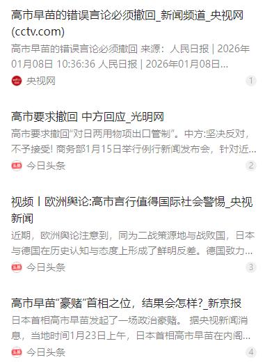 日本万万没想到,高市的愚蠢居然帮中国解决了两大问题。第一个,帮我们全中国人再次唤醒了对历史的记忆;第二个,日本让我们合情,合理,合法,且在有很充分的理由下,向全世界展示了一下全中国人的意志力,以及中国的实力。本来中国还没机会展示呢,这下好了,全世界都看在眼里了。 麻烦看官老爷们右上角点击一下“关注”,既方便您进行讨论和分享,又能给您带来更多优质的内容,感谢您的支持! 日本首相高市早苗接连放出的出格言论,让日本政坛的右翼嘴脸再次暴露在世界面前,这位一心想靠着强硬态度博眼球的政客,怎么也不会想到,自己的一系列愚蠢操作,反倒帮中国解决了两个原本还没找到合适契机的问题,既让中国人的历史记忆被彻底唤醒,也让中国有了正当理由向世界展示底气和实力。 高市早苗作为日本政坛的右翼代表,向来在历史认知问题上持错误立场,她多次参拜供奉着二战甲级战犯的靖国神社,还公然质疑承认日本侵略历史的 “村山谈话”,甚至和纳粹支持者产生关联,其历史修正主义倾向早已被国际社会关注。而她此番接连发表强硬挑衅言论,核心目的不过是为了讨好国内的右翼选民,稳固自己的执政根基,为后续的选举博取政治存在感。 不管是在历史问题上的模糊其辞、美化侵略,还是在涉台问题上发出错误信号,高市早苗的一系列言行,都狠狠触碰了历史红线,也无视了中日之间的基本外交准则。她显然严重低估了中国社会的反应能力,也看错了当下的国际舆论风向,以为靠着强硬姿态就能赢得国内支持,却不知这种行为不过是日本部分政治势力,长期对侵略历史暧昧、回避甚至美化态度的又一次延续。 在中国,高市早苗的错误言论一经传出,立刻引发了全社会的强烈愤慨和反对,而这股情绪也意外成为了唤醒全民历史记忆的契机。曾经,有些年轻人对近代历史的了解只停留在课本层面,对南京大屠杀的惨状、731 部队的细菌战罪行等史实印象模糊,甚至有些碎片化。但随着高市的挑衅,年轻人开始主动去翻阅史料、观看历史纪录片,去了解那段山河破碎的岁月。 从社交媒体上的历史知识科普,到线下纪念馆的参观热潮,一场全民层面的历史再教育悄然展开。大家不再是被动接受历史知识,而是主动探寻真相、铭记伤痛,这份因外部挑衅而被唤醒的历史记忆,也让国人的民族凝聚力变得更强,让每个人都明白,铭记历史从来都不是一句空话,而是刻在骨子里的警醒。 更让日本没想到的是,高市早苗的愚蠢言行,还为中国提供了一个完全正当的外交与舆论切入点。原本,中国始终秉持着和平发展的理念,不会主动去展示自身的强硬态度和综合实力,但高市的所作所为,让中国站在了国际法、二战后国际秩序和历史共识的道德高地上,我们的所有回应都合情、合理、合法,更有着充分的事实和历史依据。 针对高市的错误言论,中国外交部第一时间提出严正抗议,商务部也依法依规对日本采取了两用物项出口管制措施,面对日方要求撤回管制的无理要求,中方坚决反对、不予接受。我们的每一步回应都有理有据,既清晰表明了中国在历史问题和主权问题上的坚定底线,也让世界看到了中国维护自身权益的坚决态度。 而在国际舆论场上,中国的立场和态度也得到了广泛认同。欧洲多国媒体和分析人士都对高市早苗的言行提出批评,认为其历史修正主义倾向值得国际社会高度警惕,英国《独立报》、德国《世界报》等媒体纷纷刊文,指出日本在历史认知上的错误,对比德国对战争罪责的深刻反省,日本的做法显得格格不入。高市本想对外展示日本的强硬,反倒让国际社会重新审视日本的历史态度,也让世界看清了日本右翼势力抬头的危害。 高市早苗这场为了对内拉选票、对外示强硬的政治表演,最终彻底沦为了一场反向助攻,不仅没有达成她想要的政治目的,反而让自己陷入了内外交困的境地。在日本国内,她执意解散众议院举行超短期选举的做法,引发了民众和在野党的强烈不满,过半民众反对其这一决定,认为其只为个人政治利益,忽视民众生活。 而在国际上,她的言行不仅破坏了中日关系,也让日本的国际形象再次受损,就连日本国内的友好团体,比如日本中国友好协会,也对其行为提出强烈抗议,认为其破坏了中日民间友好的根基,让多年来的民间交流努力付诸东流。这场由高市一手引发的闹剧,成为了日本一次严重的战略判断失误,也让日本为其右翼势力的抬头付出了代价。 反观中国,借着这次契机,我们不仅唤醒了全民的历史记忆,凝聚了民族力量,还在世界面前展示了中国人的坚定意志力和中国的综合实力。全世界都看在眼里,中国始终是历史真相的坚守者,是国际秩序的维护者,更是和平发展的践行者,而任何试图挑战历史底线、侵犯中国主权的行为,最终都只会自食恶果。