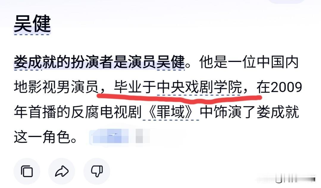 原来这个好演员是中戏毕业的,难怪他的演技这么好!说到反腐剧《罪域》,很多人对剧中阴狠狡诈的“娄成就”印象深刻。 娄成就这个角色的成功,离不开演员吴健的精准塑造。出身中央戏剧学院的他,凭借扎实的演技将反派演绎得淋漓尽致,也让观众记住了这张戏里戏外反差极大的面孔。 他还出演了不少优质作品,尽管是早期的,但他对角色复杂性的刻画,至今仍被剧迷津津乐道。好演员的角色生命力,从来与戏份多少无关。 (图片来源于网络) 演员学历背景 霸总演员