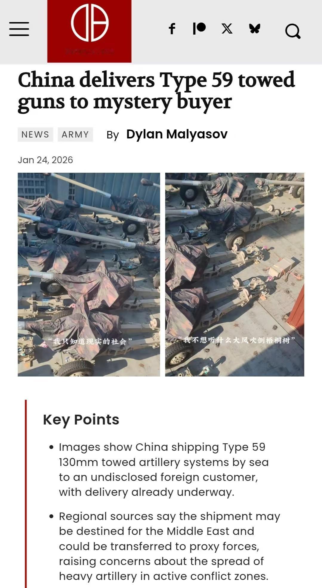 外媒报道,我方向中东地区,一个神秘国家交付了59式130毫米加农炮。根据报道,59式130毫米加农炮是根据苏联M-46野战炮为基础研发,一种远射程牵引式火炮。 老装备也能有新舞台。 2026年1月,几门中国59式130毫米加农炮低调“现身”中东。 被篷布裹得严严实实,悄悄卸下货船,像是老将出征又不愿张扬。 这不是最新潮的高科技武器,却能引发外界关注。 原因无他——一个时代的“苦力”,为何此刻又被请回舞台? 这场军火交易背后,藏着中东安全棋局的微妙变化,也让人琢磨老家伙的“朴素价值”。 59式加农炮的身世并不复杂。 原型是苏联M-46,1959年中国一边仿制一边改进,成了现在的59式。 它最大射程27公里,打火箭增程弹还能飚到38公里。 性能不能跟现代高精尖比,但也算“远投选手”。 历史上,伊朗和伊拉克就曾买过上千门。 和西方花里胡哨的大炮比,59式像是“朴实农民工”,简单、结实、耐造。 手动炮闩、机械瞄准、没有数字化火控,训练三周就能上手,哪怕部队里没几个高学历,也能用得溜。 单门价格不过100万美元,是西方同类火炮的五分之一,打出去的榴弹三千美元一发,炮弹海战术说来就来。 这样的老炮,最适合干什么? 打固定阵地、压制区域、围攻据点,尤其适合反恐作战。 有些中东国家在巷战里,花大钱买先进装备,最后发现还不如一门老炮管用。 比如胡塞武装在也门,真就用类似火炮给沙特基地“送温暖”,老炮不挑吃苦,有啥用啥。 不过,59式也有短板。 射击精度三四十米,比西方火炮差三倍,打一发想全中靶没那么容易。 阵地转移慢,二十分钟才能撤干净,真遇上对方反炮兵火力,容易吃亏。 但在低烈度冲突里,这些缺陷往往被性价比掩盖。 这批火炮落到谁手里,引发猜测。 中东买家不止一个,阿联酋、伊拉克、伊朗都有“采购”理由。 阿联酋有钱,装备先进。 连“爱国者”防空系统都有,但巷战和反恐任务多,还是想补充几门便宜的面杀伤火炮。 2025年它军费有一成花在反恐上,买59式能撑起也门战场的火力。 伊拉克最近几年忙着防范北部山区的ISIS残余,边境线长。 59式射程刚好能覆盖八成防区,可用来盯死极端势力。 伊拉克预算紧张,急需补充两百门火炮维持基本面子,便宜耐用成了最大卖点。 伊朗则更“隐晦”些,喜欢用代理人打“影子战争”。 比如黎巴嫩真主党手里就适合用这种老炮压制以色列巡逻队。 59式没电子系统,技术不容易被窃,适合做那种“我没出手你别乱猜”的否认式介入。 聊到这批火炮的到来,绕不开背后的战略算盘。 中国在中东卖武器,向来主打高性价比和“不干涉内政”的标签。 2025年中国在中东军售市场份额涨到12%,和美俄的高端装备不直接“硬碰硬”,而是用传统装备稳住关系。 卖老炮不光是做生意,更像是给中东国家“下沉市场”提供工具包。 这样做既能维持存在感,又避免激怒美国和俄罗斯。 美国对这类交易的反应不算激烈。 59式老炮威胁不到美军,属于“低敏感”产品,大多时候美国睁一只眼闭一只眼。 可如果伊朗真拿到这些火炮,再转交给代理人。 尤其用来对付以色列,那美国就不会坐视不理,追加制裁不在话下。 以色列方面也做了准备,他们已经部署了“铁束”激光防御系统,专门拦截炮弹。 虽然能拦住不少,但真遇上“炮弹海”,消耗战也能让以军资源紧张。 老炮未必能改变战局,但能拖住对手脚步。 从冷战遗产到当下热点,59式加农炮的再现,是老装备新使命的最佳注脚。 在高端冲突和低烈度战争混杂的年代,能打能用的简单装备有它的生存之道。 这次交付,既是中国军贸“适用即合理”的体现。 也是中东安全格局碎片化、务实主义盛行的一个缩影。 未来中东如果局势继续紧张,59式这些老炮很可能会成为代理战争的常用工具。 但随着数字化战争浪潮席卷全球,它们的“黄金时代”只剩十年光景。 军售从来不只是买卖,每门老炮流向战场。 都是一记战略信号,提醒世人: 技术进步再快,现实的需求和博弈,总会让老家伙们找到属于自己的舞台。