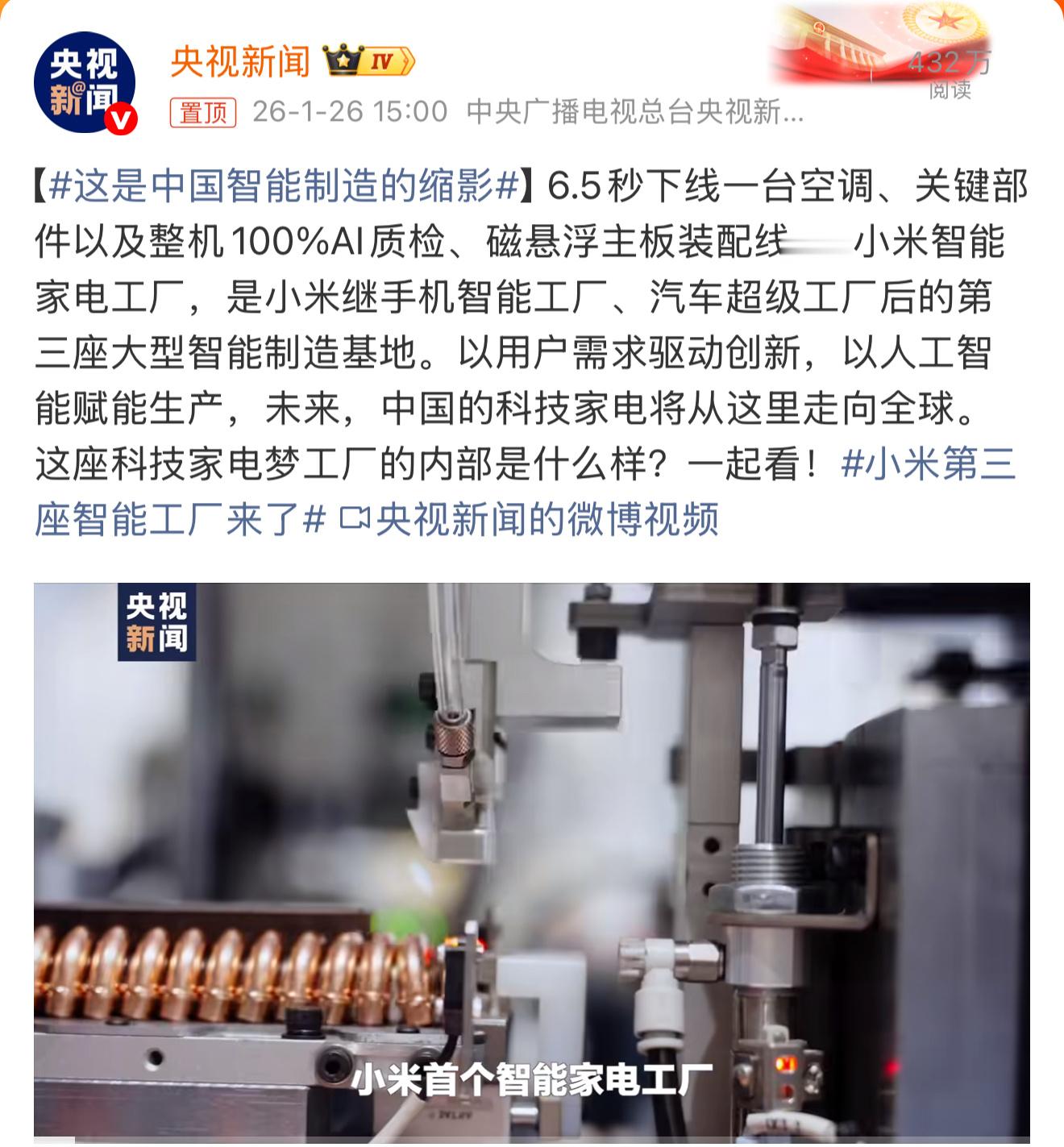 小米第三座智能工厂来了 这是第三座大型智能制造基地,前两座做手机和汽车,这次轮到家电。看这节奏,小米汽车车型在增加,家电业务也在拓展,后续工厂肯定还会接着建,制造业的占比只会越来越高。以前都是依赖代工厂的轻资产玩法,现在自己砸钱建厂搞生产,小米正在走自产自销的战略布局。