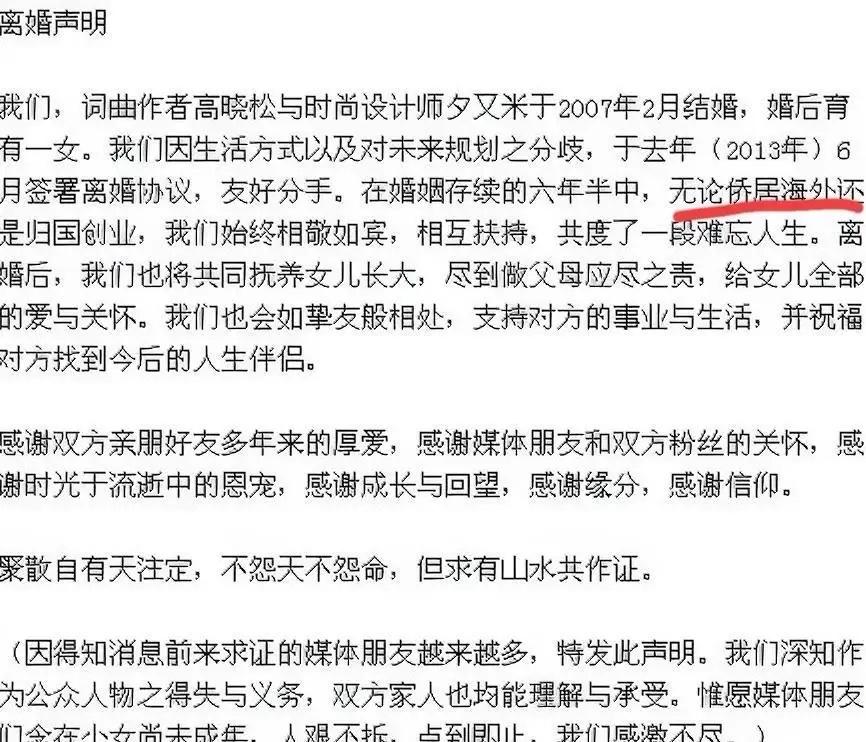 谁能想到当年高调秀恩爱的高晓松,会和小19岁的娇妻走到离婚这步!当年他把女方宠成公主,全网晒幸福的模样羡煞旁人,为了对方的发展送她赴美,自己留在国内拼命搞事业,可这份付出最后却换来一场和平分手,任谁看了都觉得唏嘘。 其实哪是什么突然的探亲看清真相,不过是隔着山海的两个人,早就被不同的生活节奏磨掉了同频的可能。年龄差带来的认知鸿沟,加上异地的距离,让彼此的人生规划越走越远,不是谁对谁错,只是成长的脚步再也凑不到一起。高晓松的快刀斩乱麻,从不是算清了利益账,而是看懂了感情里最现实的一点:再深的喜欢,也熬不过不同频的奔赴,勉强维系的感情,不如体面放手。 说到底感情里最忌讳的就是一个人拼命追,一个人随意走,步调不一致的两个人,终究走不到最后。你觉得在感情里,距离和成长哪个更能拉开两个人的距离?