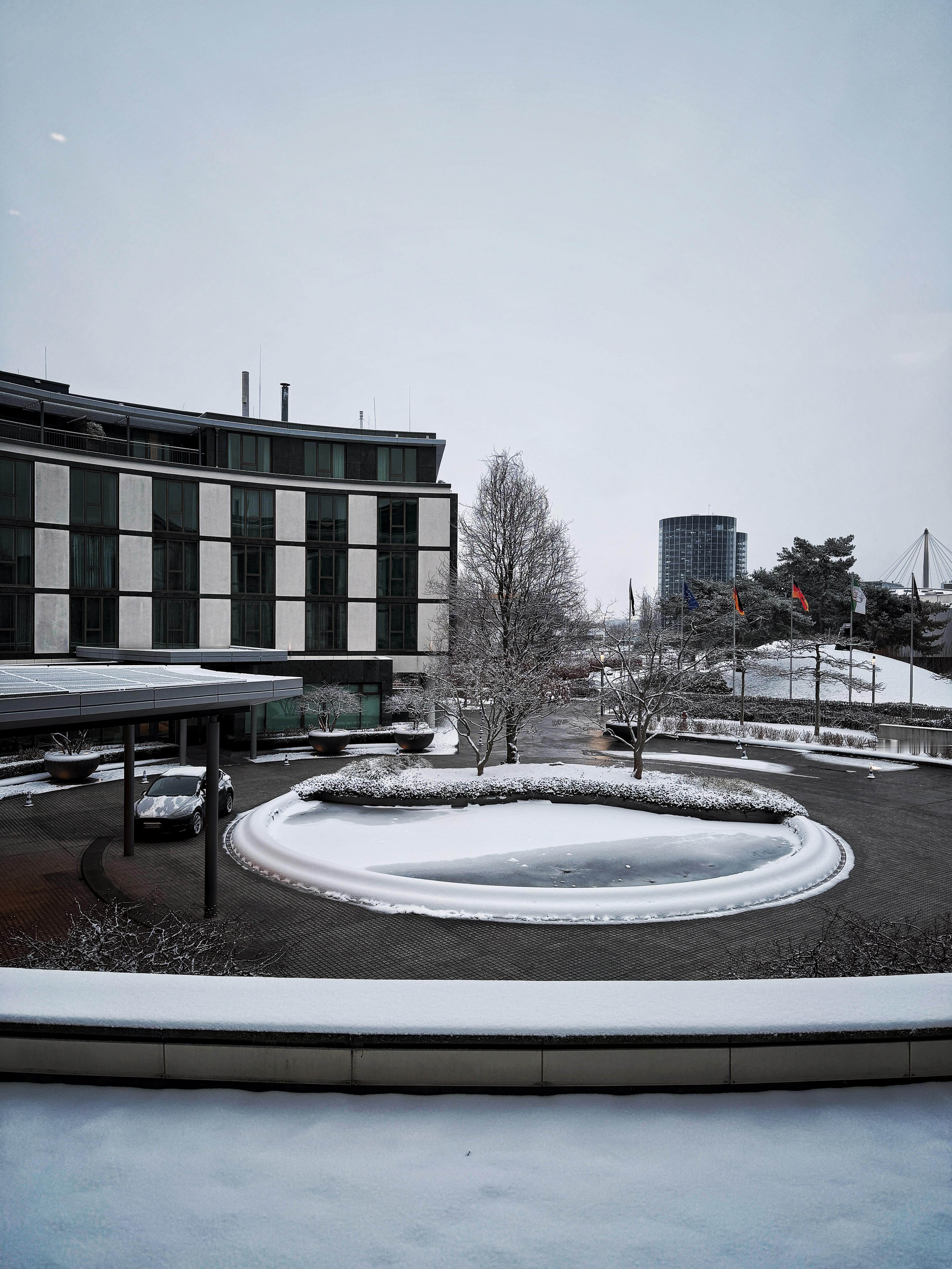 准备开始今天的工作。2026第一场雪是在德国看的,你那今年下过雪了吗❄️?欣哲频道下雪 德国·沃尔夫斯堡汽车城