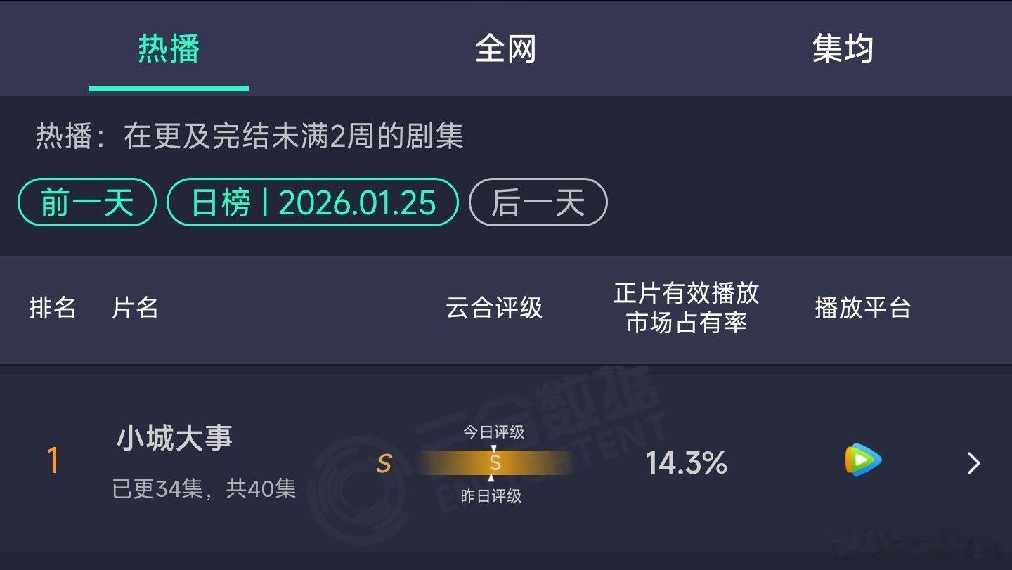 小城大事云合14.3%,连续三天登顶第一了