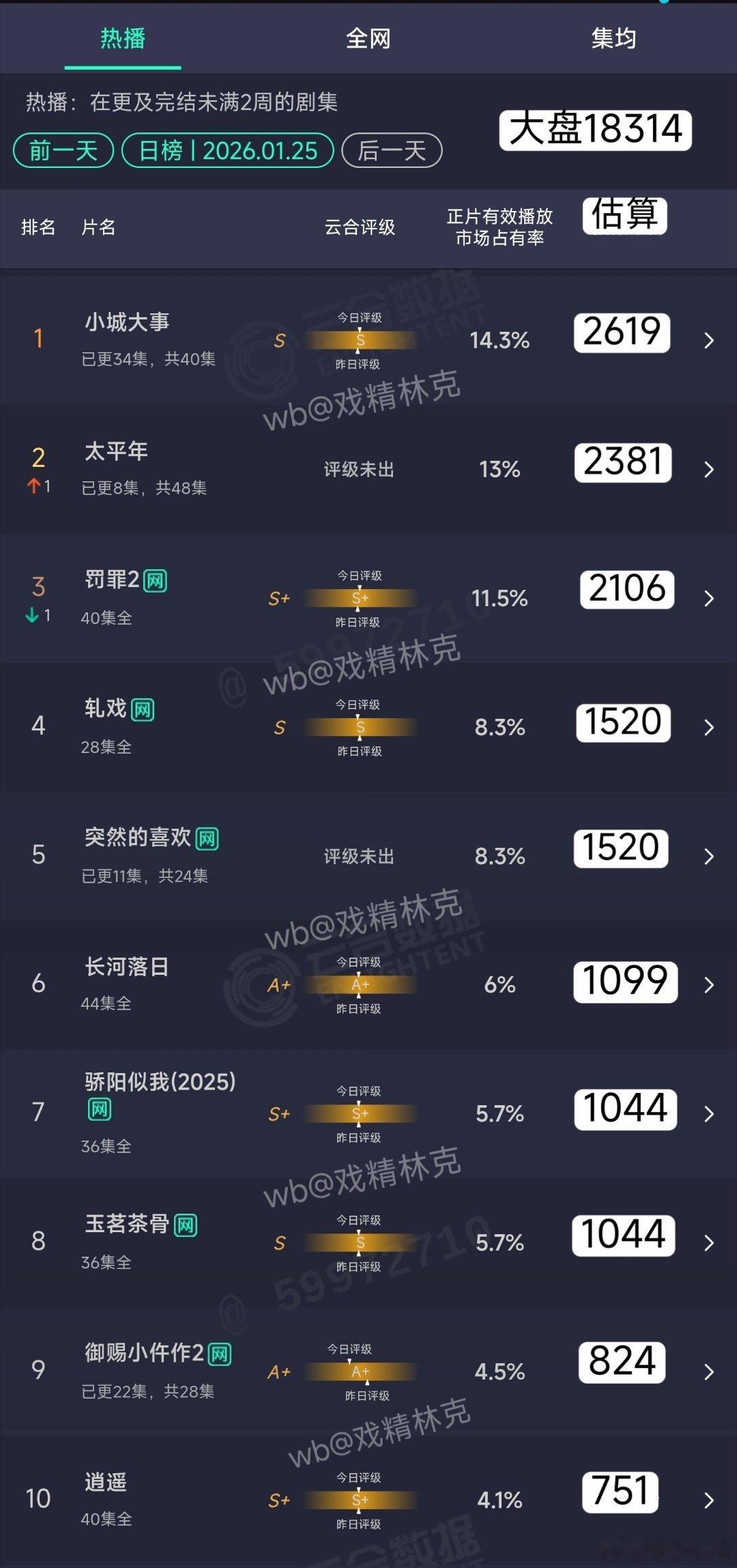 1.25云合估算:太平年2381万,三平台联播,扑开扑走,没啥指望了