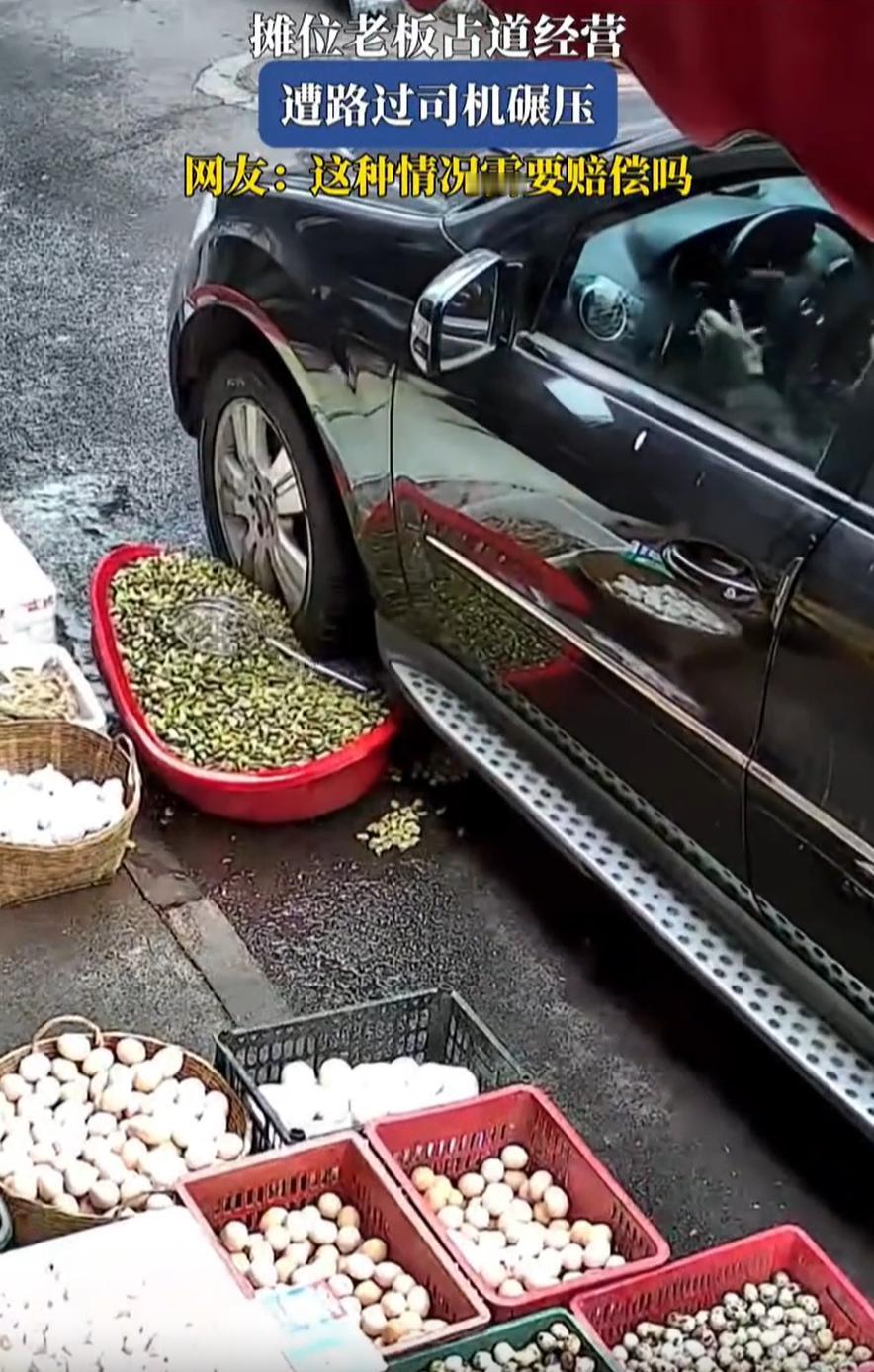 这该不该赔?江苏,一位店铺老板占道经营把商品摆在门前售卖,一辆黑色奔驰车路过时不慎将摆在地上的一盆商品压坏,店家要求车主赔偿,可车主却觉得对方是占道经营,跟自己无关 监控显示,一家店铺老板像往常一样把商品摆到门前的人行道和马路上卖,有咸菜,有各种蛋品,大部分都堆在过道边,但其中一盆商品摆得特别靠外,已经伸到了马路上。一辆黑色奔驰车经过时,没留意到地上这盆东西,慢悠悠地开了过去,结果正好压了个正着 店家一看东西被压坏了,赶紧出来拦住车主,要求赔偿。车主却不乐意了,觉得对方本来就不该把东西摆到马路上,这属于占道经营,压坏了也跟自己没关系。两人争执不下,周围的人也凑过来看热闹 这段监控画面被人发到网上后,一下子引起了很多讨论。大家关注的焦点就一个:这到底该不该赔? 有网友说:该赔。不管店家占不占道,东西是车压坏的,一码归一码。车主开车没注意到路面情况,也有责任。不能因为对方摆得不对,就觉得自己可以不用负责 也有网友表示:如果这样都赔,那占道经营岂不是更理直气壮了?反正摆出去有损失别人还得赔,那马路真成他家摊位了。应该让警察来判,如果不赔,店家以后可能就不敢乱摆了,对整顿占道也有好处。不然大家都觉得摆出去无所谓,反正有保险或者路人会赔 两边说得似乎都有点道理,这就让事情变得有点复杂。从法律角度看,这类纠纷往往需要理清双方的责任 店家占道经营确实违规,影响了道路的正常使用,也增加了物品受损的风险。而车主在驾驶过程中,也有义务注意路面情况,确保安全通行 如果因为疏忽导致他人财物损失,通常需要承担相应的赔偿责任。但店家的违规行为也会被纳入考量,可能会减轻车主的责任比例,甚至在某些情况下,店家需要自己承担全部损失 现实中,这类事情往往以双方协商解决收场。有时候车主赔一点,算是买个清静;有时候店家自认倒霉,毕竟自己理亏在先。真正闹到需要警察或者法院来判的,并不多