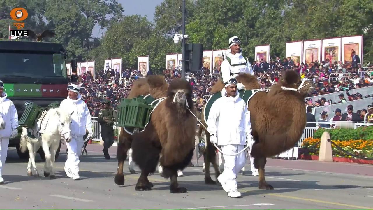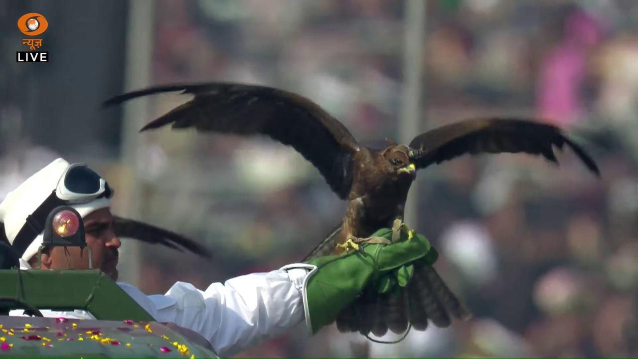 在 2026 年卡尔塔维娅大道的印度共和国日阅兵式上, 印度陆军首次亮相了一支名为 “Him Yodha” 的特殊动物队伍,这支队伍展示了服务动物在高海拔和极端地形中的重要作用。 在德里卡尔塔维娅大道的共和国日阅兵式上,展示了 “HIM Yodha”、双峰驼、扎尼斯卡里矮种马、黑鸢(猛禽)。此外,五只本土品种的犬只 —— 穆德霍尔猎犬、兰普尔猎犬、奇皮帕莱犬、孔拜犬和拉贾帕拉亚姆犬,它们经过训练成为攻击犬和巡逻犬,也在阅兵式上进行了展示。 记者近距离拍摄到了头带摄像头的“猛禽战机”,看上去很有印度特色。它不像无人机那样有续航问题,也不像无人机那样对电磁干扰敏感,还对雷达隐身,这可以确保印度在战斗中取得先进的优势。